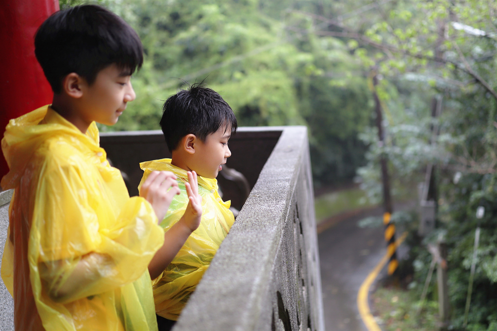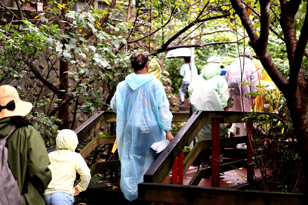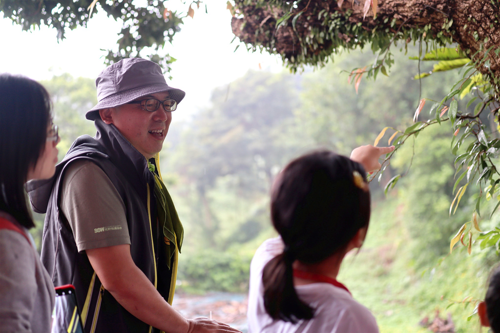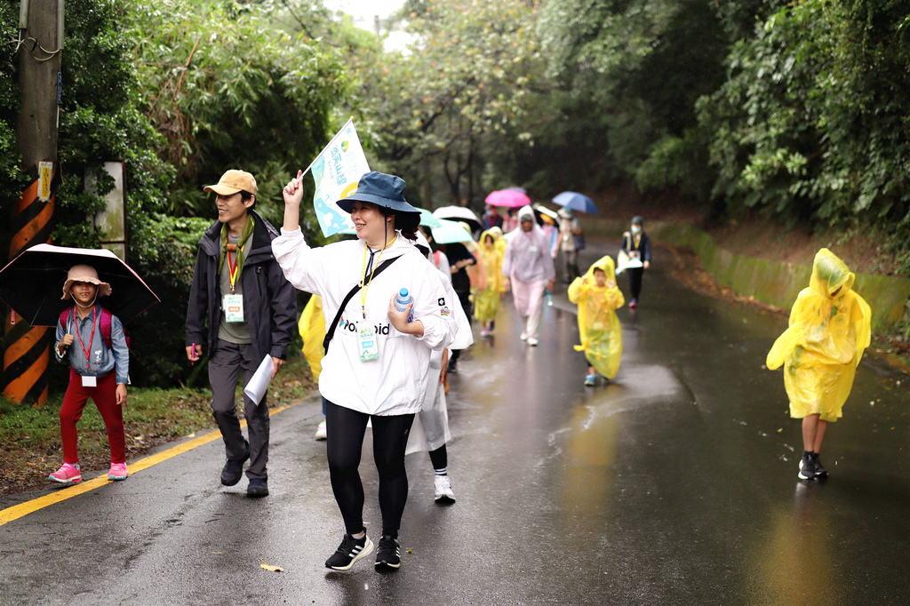 雖然天公不做美,需要穿著雨衣打著傘健行,但可以感受得到大朋友小朋友這份想要親近大自然的心情,雨水打落在身上,也有種另類的詩情畫意,就這樣跟著嚮導老師一步一步往前進,不但要健行,也要睜大眼睛觀察大自然的奧秘!
