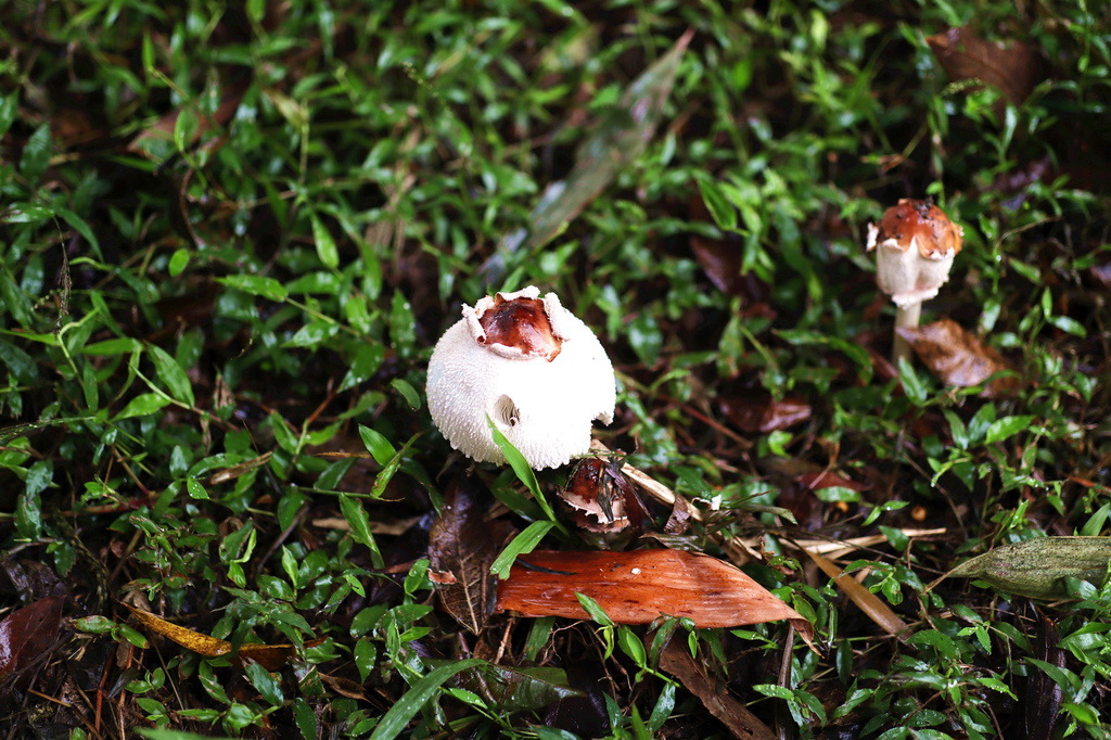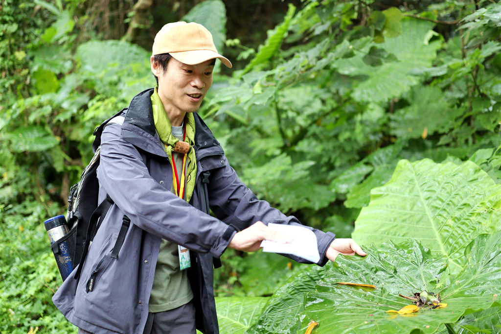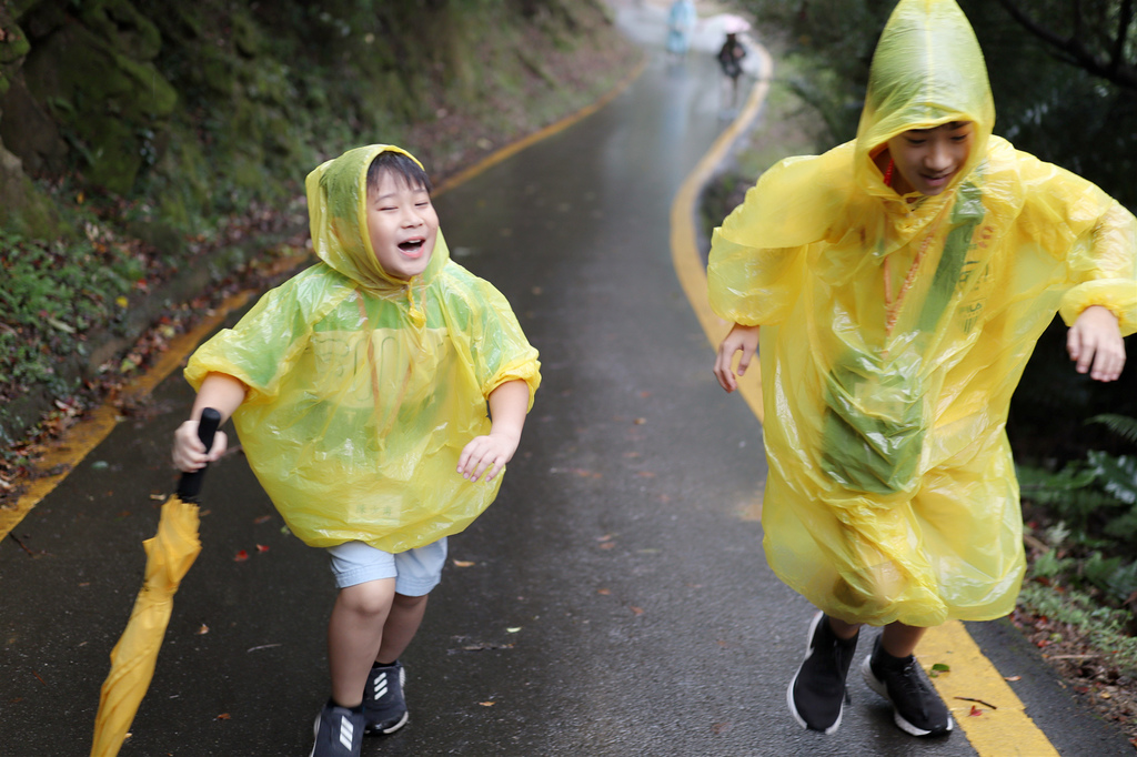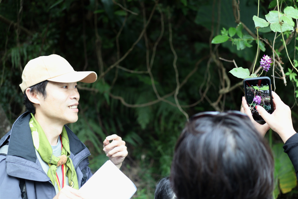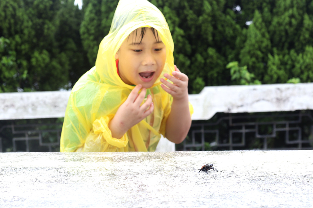 雖然天公不做美,需要穿著雨衣打著傘健行,但可以感受得到大朋友小朋友這份想要親近大自然的心情,雨水打落在身上,也有種另類的詩情畫意,就這樣跟著嚮導老師一步一步往前進,不但要健行,也要睜大眼睛觀察大自然的奧秘!