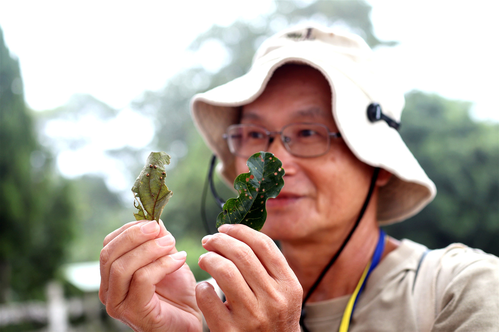 嚮導老師還拿出一個好特別的葉子,原來這叫做「蟲癭」,看似葉片上會結果實,其實是昆蟲為自己打造的房子,真的讓人大開眼界! 沒有老師的講解,我可能一輩子爬山都不會去注意到這麼有趣的事物!