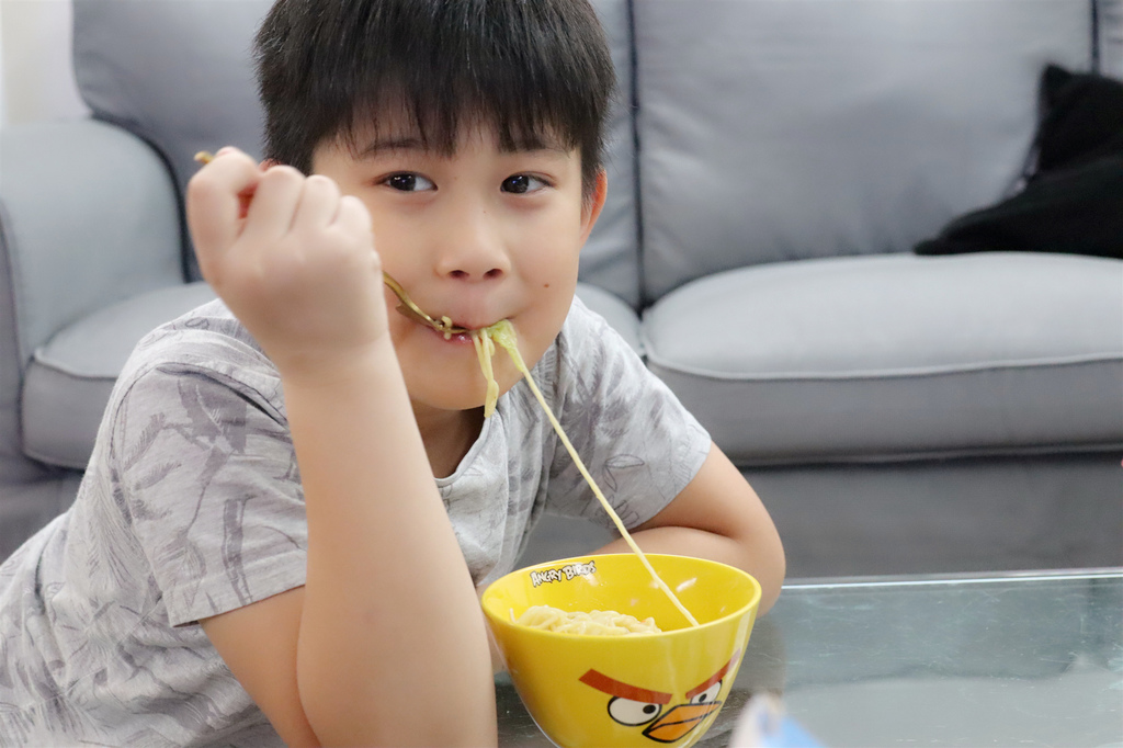 鏞鏞甫甫說,他們覺得這碗麵吃起來特別"滑溜溜",味道也特別好吃,有一種健康的感覺,吃完了還要再來一碗! 的確是啊,添加了蘆薈的麵條,就是那麼與眾不同!
