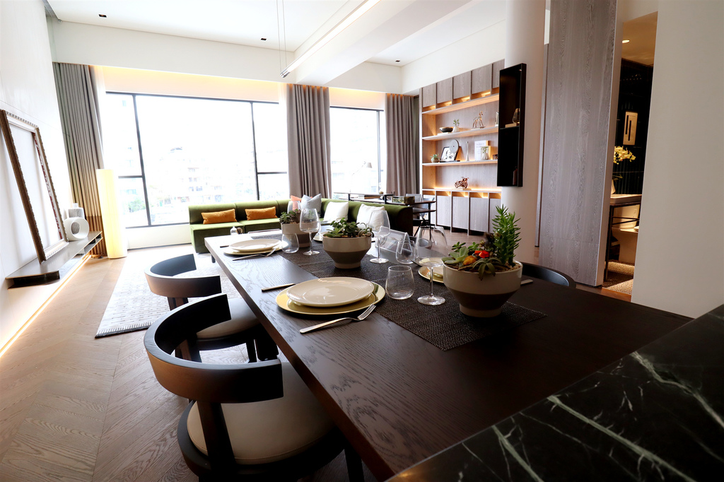 坪數大約32坪,可以規劃出3房2衛,坪效之好非常符合小家庭的需求。同樣有非常充足的採光,以及讓人放鬆的景觀視野。敞開的客廳與餐桌空間,感覺比實際坪數還要開闊。