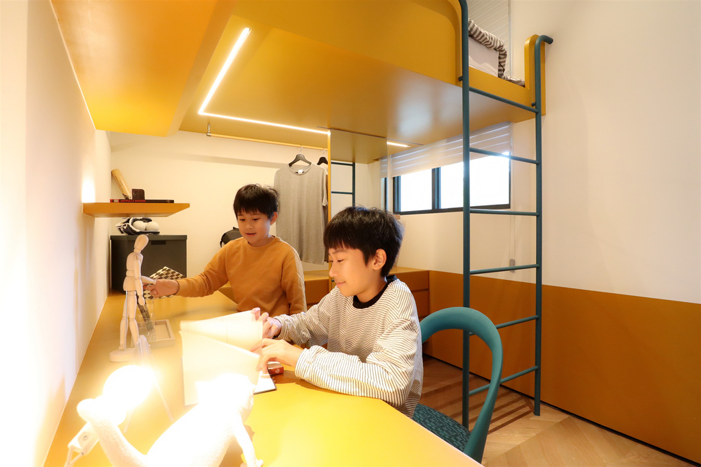 61坪的空間,可以規劃出4房3衛浴,對於有換屋需求的人來絕對是綽綽有餘。挑高空間也能規劃出擁有更多空間的兒童房,讓小孩在房間也能隨心所欲地閱讀或玩耍。