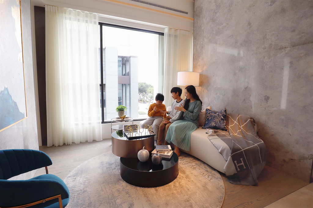 除了建築設計與國際接軌,住宅內部的格局也相當用心,四棟建築的坪數大致分為30坪、47坪跟60坪,首先分享的是B1戶型的室內空間!