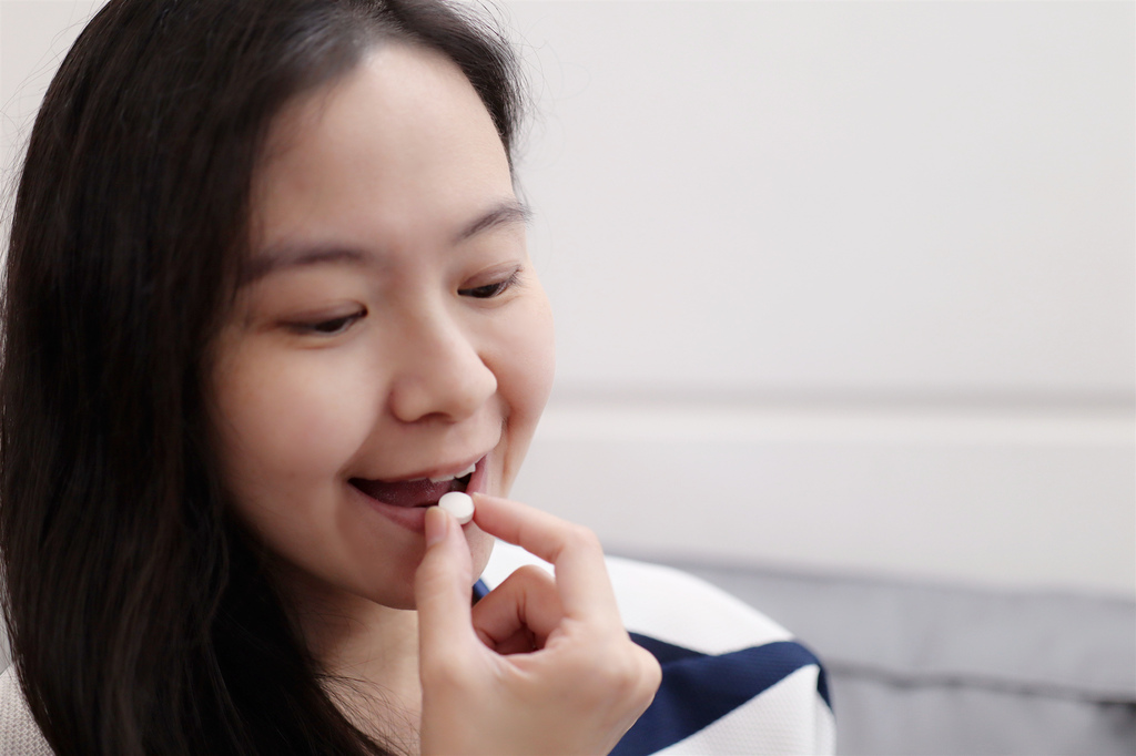通常我會讓鏞鏞甫甫一天吃1次,建議一次吃4顆,白色圓形的補給錠,有著淡淡的優格風味,真的超級無敵好吃的,如果不限制一下數量,孩子可能一下子就把整瓶吃光光了呢