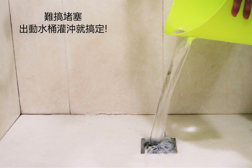 如果遇到難搞的堵塞問題,趕緊出動家中水桶,利用大量水柱的壓力灌沖,更可以輕鬆搞定堵塞狀況喔!