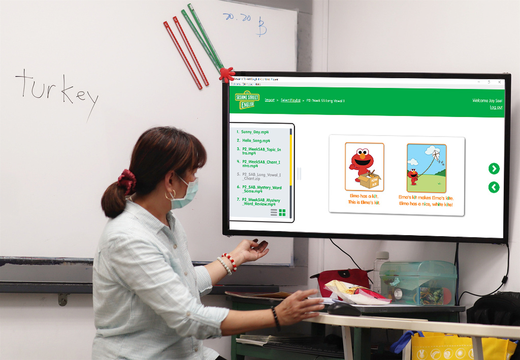 教室裡的電子化教學,更能讓孩子引發學習興趣,除了單字、句型、發音的教學,老師還利用歌曲帶動唱,讓孩子們沉浸在美語音樂中,不知不覺就更能加強語感囉!