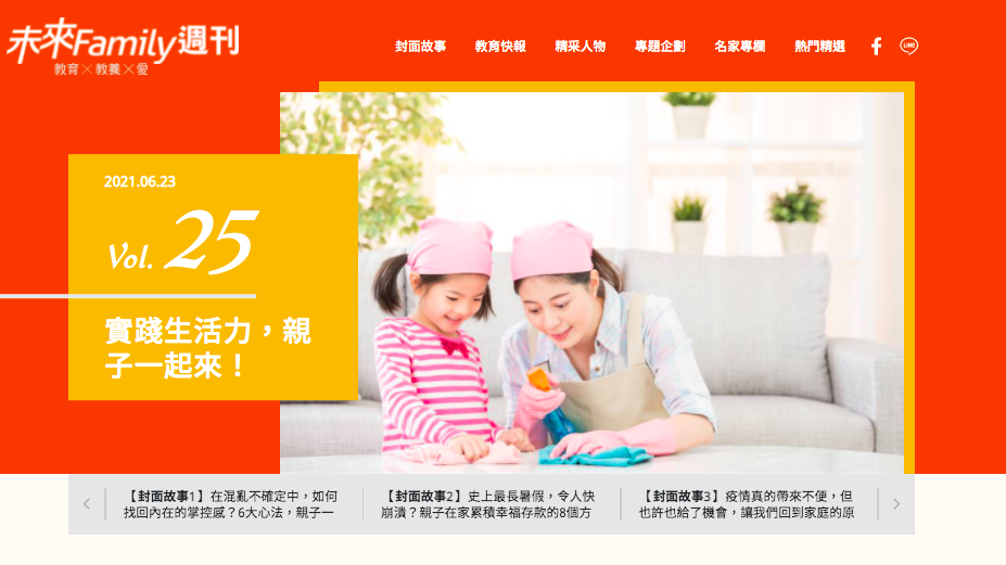 而今天要好好分享的就是專門給父母、教師看的教育教養週刊《未來Family》數位週刊,對我來說就像是「親子大補帖」一樣! 真難想像這竟然是免費的電子報,因為每週的內容都非常豐富,裡面有好多專家學者的專業分享,就像是一盞育兒明燈似的,幫助許多家長在教養的道路上走得更順利!