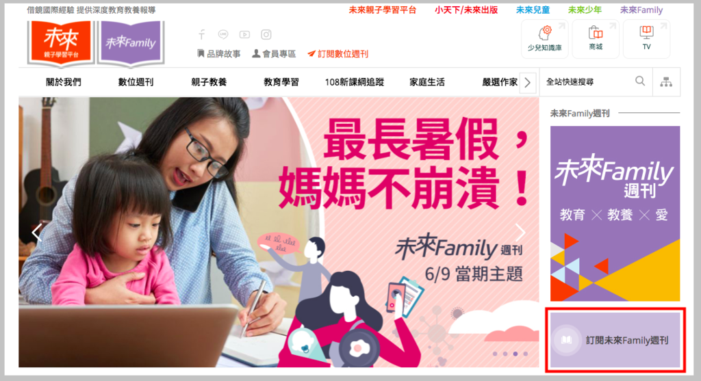 《未來Family》官網匯集了所有文章,但想要每週都收到整理好的最新文章,就需要一鍵訂閱喔!進去官網之後,可以點下方紅框處一鍵訂閱!或是請點這裡就可以囉!