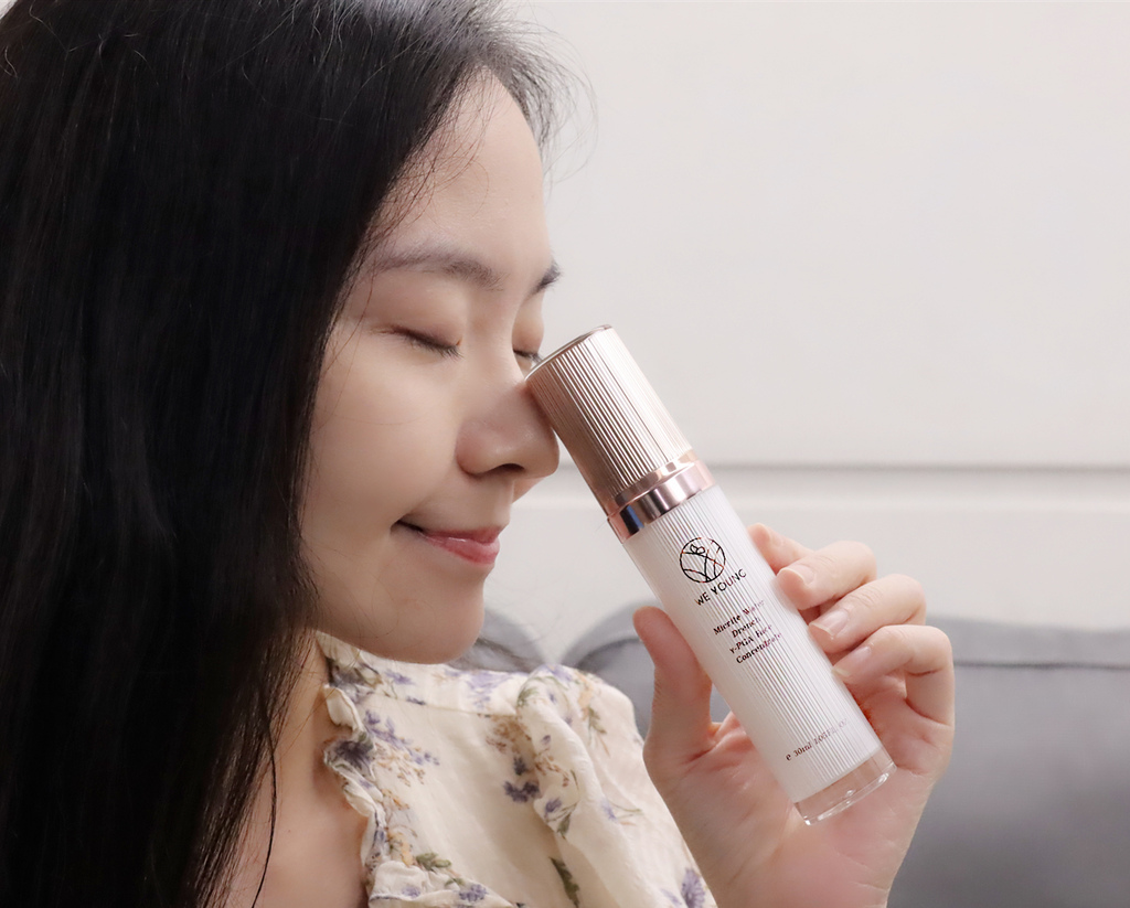 在按摩的時候,也能體會到保濕因子漸漸被肌膚吸收的感受,我也非常喜歡微晶超導保濕晶露若有似無的香氣,聞起來就像和大自然融為一體似的,非常純淨舒服!