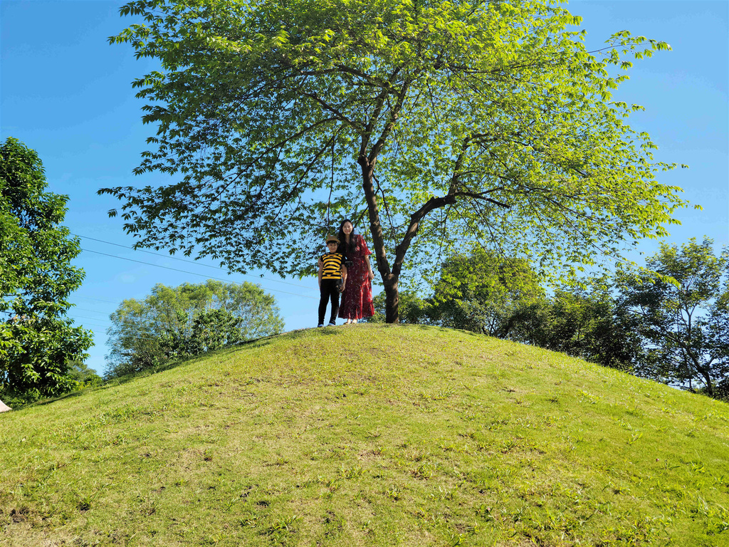 就在一進園區的左手邊有一座小山丘,綠油油的草地還有顆大樹,別忘了到此一遊拍照留念喔!