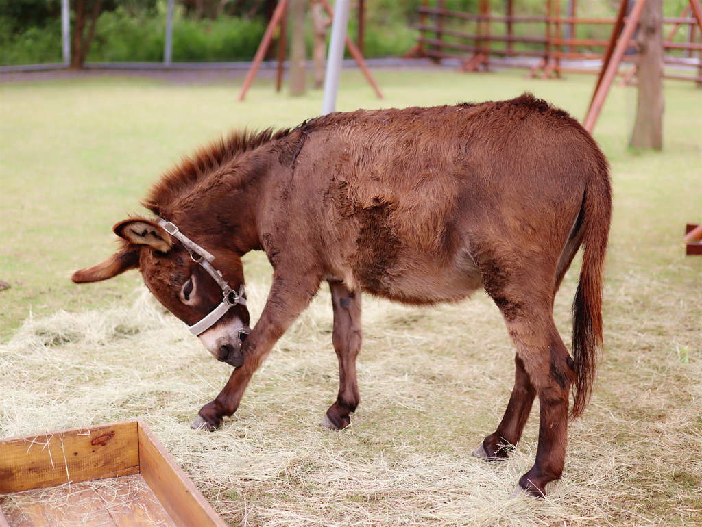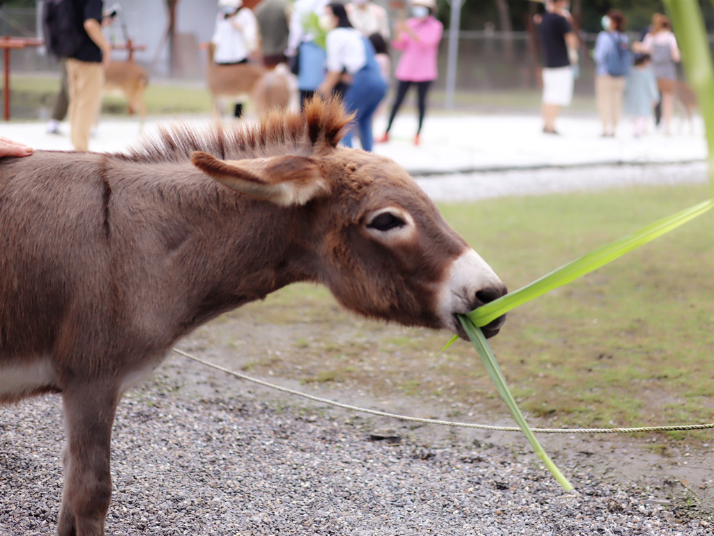 園區的可愛小驢也是孩子們爭相餵食的小明星,溫和的驢子緩緩地步行在草地上,拿出青草就會探出頭來享用,實在是揪促咪啊!