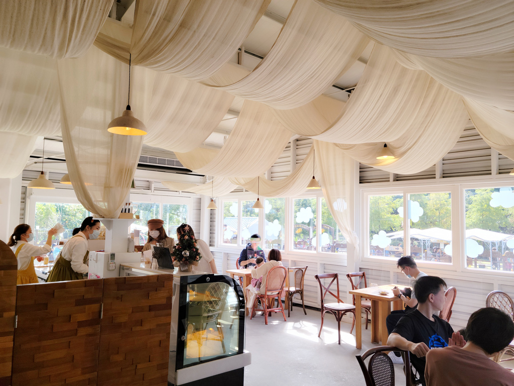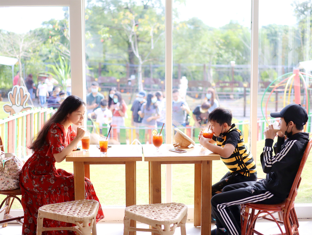 如果想要休息一會兒喝杯飲料吃吃點心,可以到園區內的「美美子咖啡廳」,咖啡廳的飲品點心都不錯,風景更是讚,很值得和家人靜靜坐在窗邊享用美食、近距離的看看窗邊走來走去的可愛水豚爺爺!