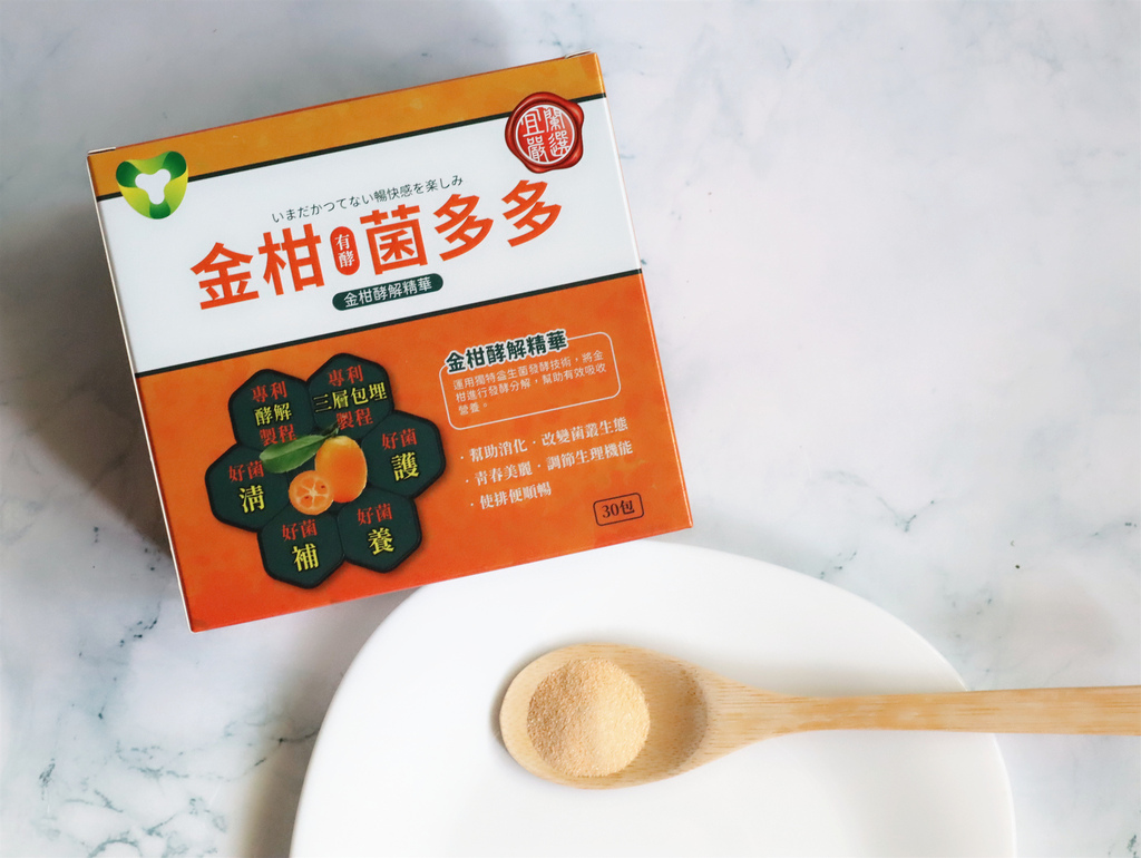 一開始看到這款益生菌就覺得太特別了,竟然有金柑的成份,原來這是厲害的獨家「金柑酵解精華」,嚴選宜蘭友善種植金柑(金棗),經由益生菌酵解製程及專利包埋技術,保留果實最多的營養,可以說是非常與眾不同的益生菌喔!