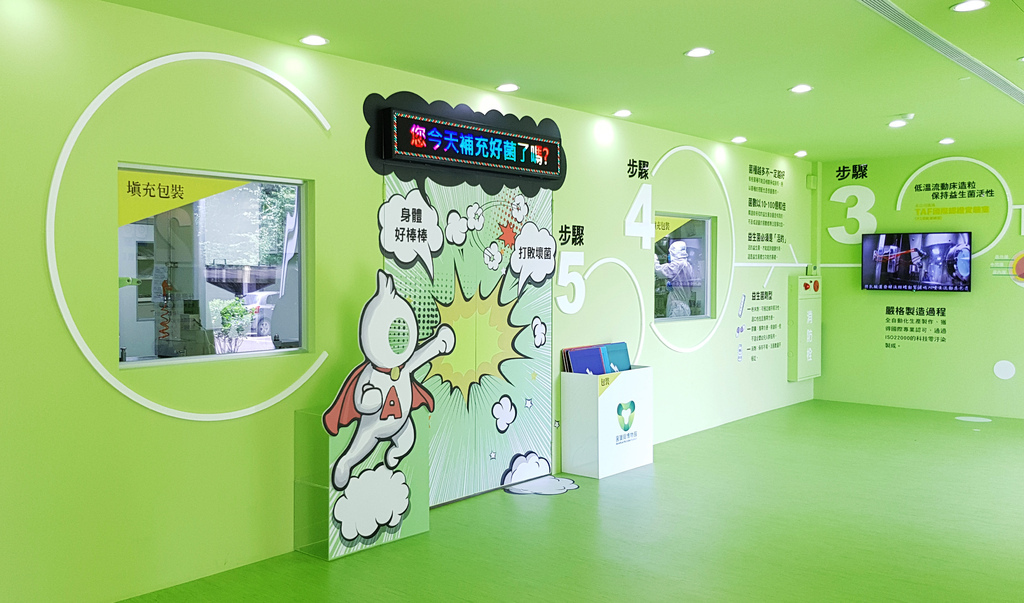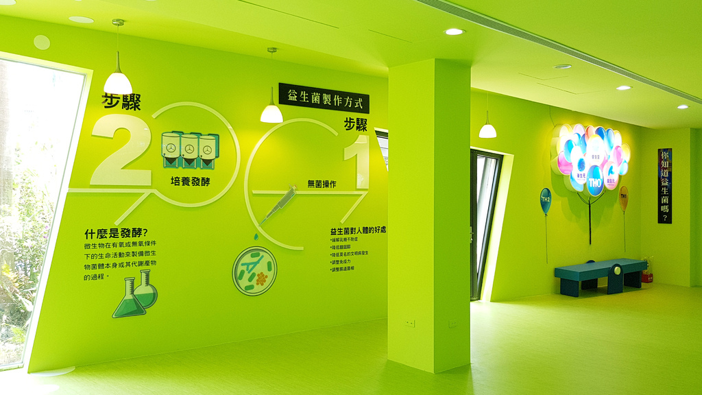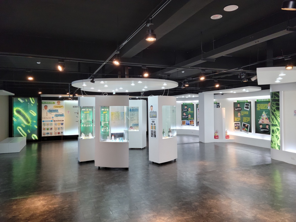 館中分為「微生物區、牛樟芝區、產線流程區」,可以知道在大自然環境中並不一定都是壞菌,也有各種對人類有益的寶貝菌種,用有趣的方式來傳達益生菌的好處和製作流程。