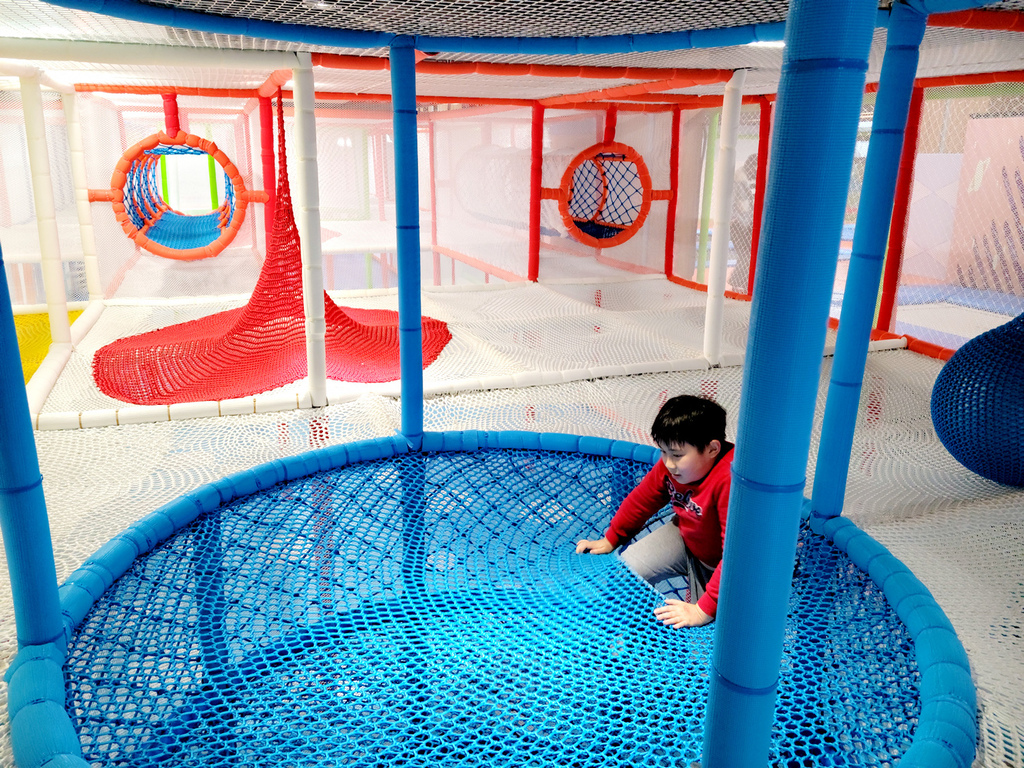 還有從幼兒到大兒童都超級愛的體適能區,這一區非常非常大,可以說是我帶孩子玩過最寬廣豐富的體適能攀爬設施了,還有些挑戰性,真的很好玩!