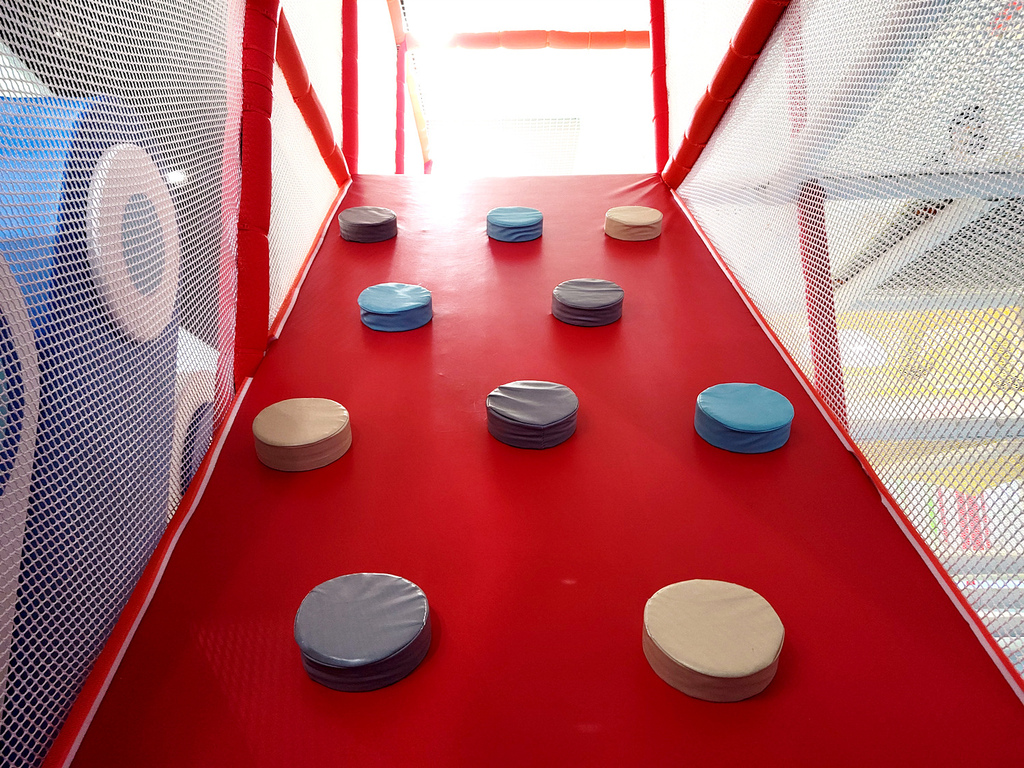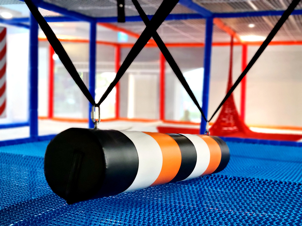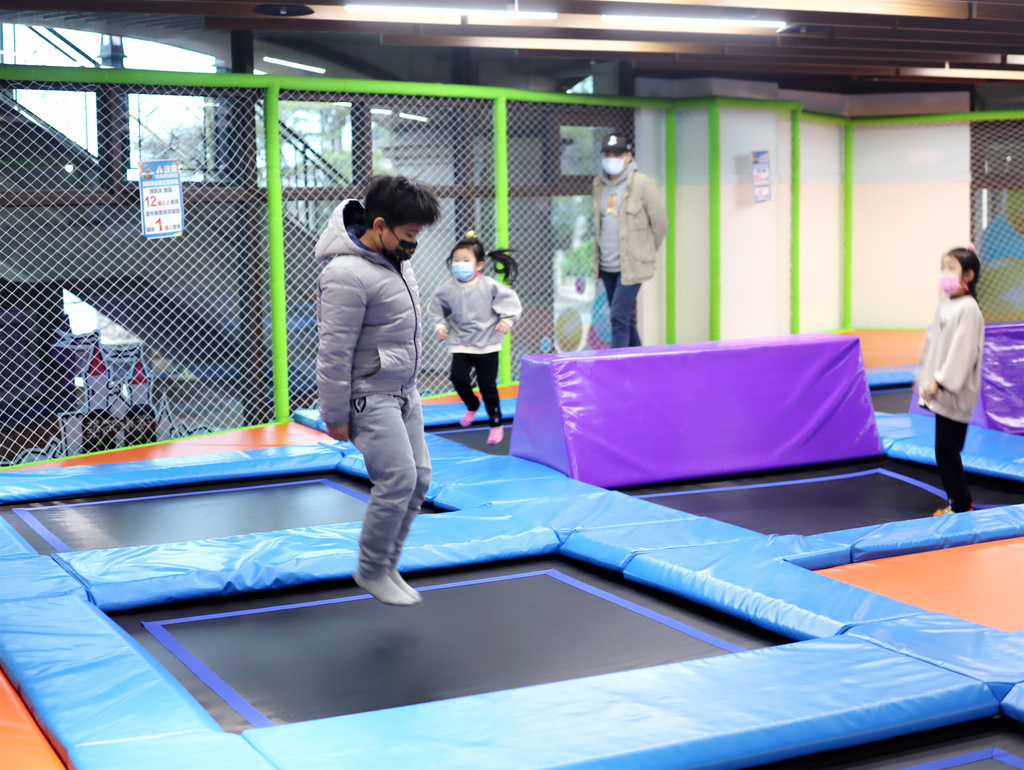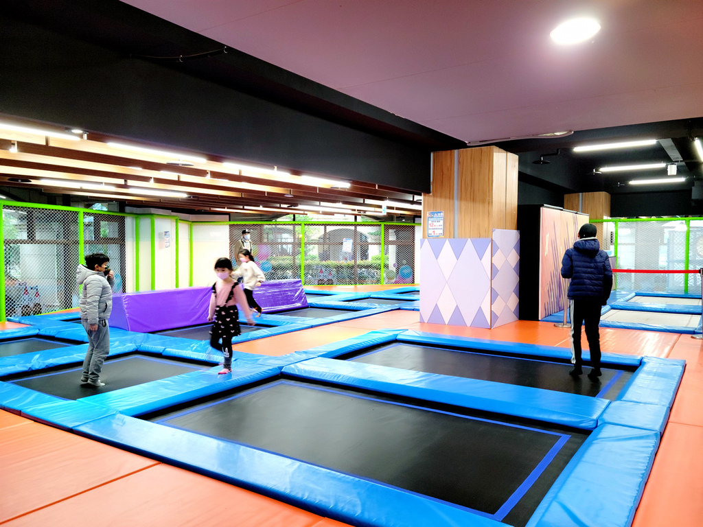 再來就是鏞鏞甫甫愛到不行的彈跳床區,像這樣的大型彈跳床設施,實屬少見,能夠在飯店內體驗到,真的很難得,非常推薦帶著孩子到「淡水阿熊勇闖歡樂島」玩耍喔!