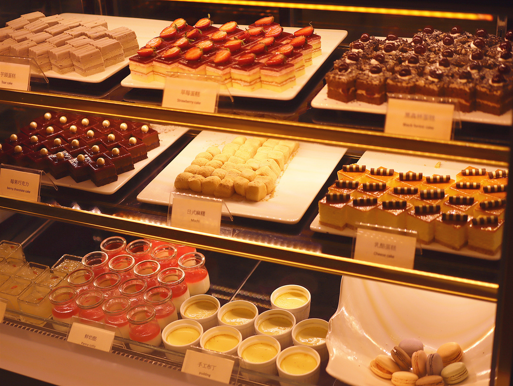 值得一提的是,甜點區也非常吸引人,每一款蛋糕都忍不住要品嚐看看,想要盡情大快朵頤,絕對要來田園自助百匯餐廳好好享受一番喔!