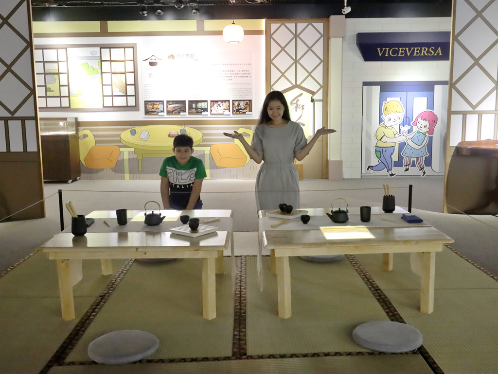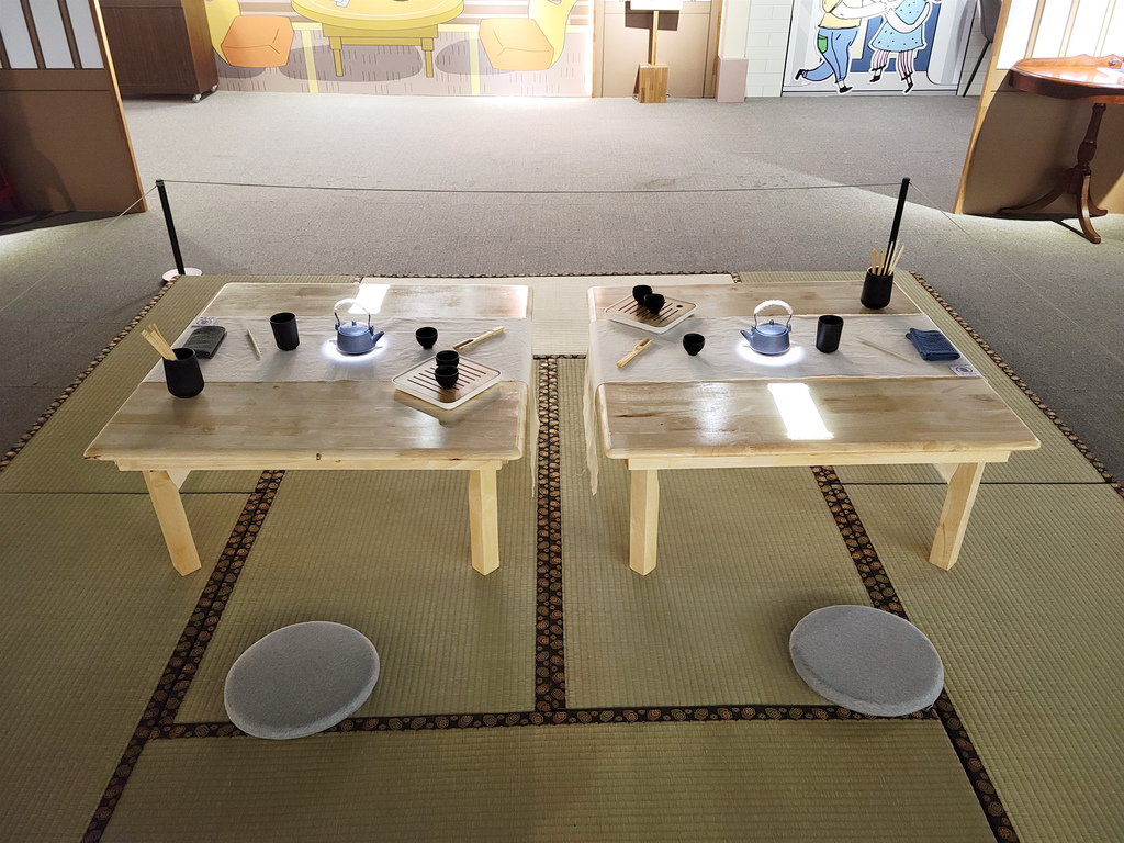 「和室榻榻米茶席光雕體驗區」也帶領我們一秒走進復古的日系庭園中,感受獨有的異國風情,看著光影變幻中的茶具,就好像回到數十年前的日系老房子一樣,如夢似幻!