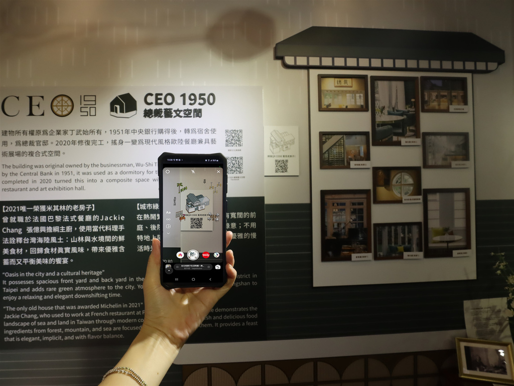 只要掃瞄牆上的 QR Code,就能看得到 AR 老房子的畫面,讓建築物的空間感立現,極為珍貴的文化資產,都栩栩如生地呈現在我的眼前!