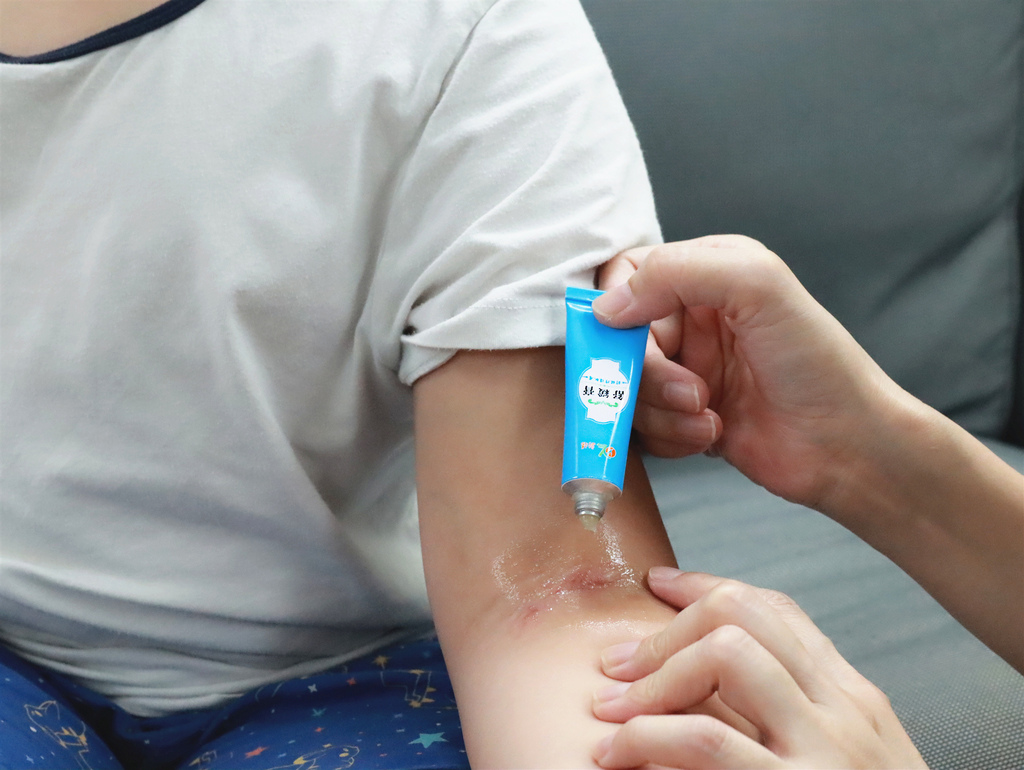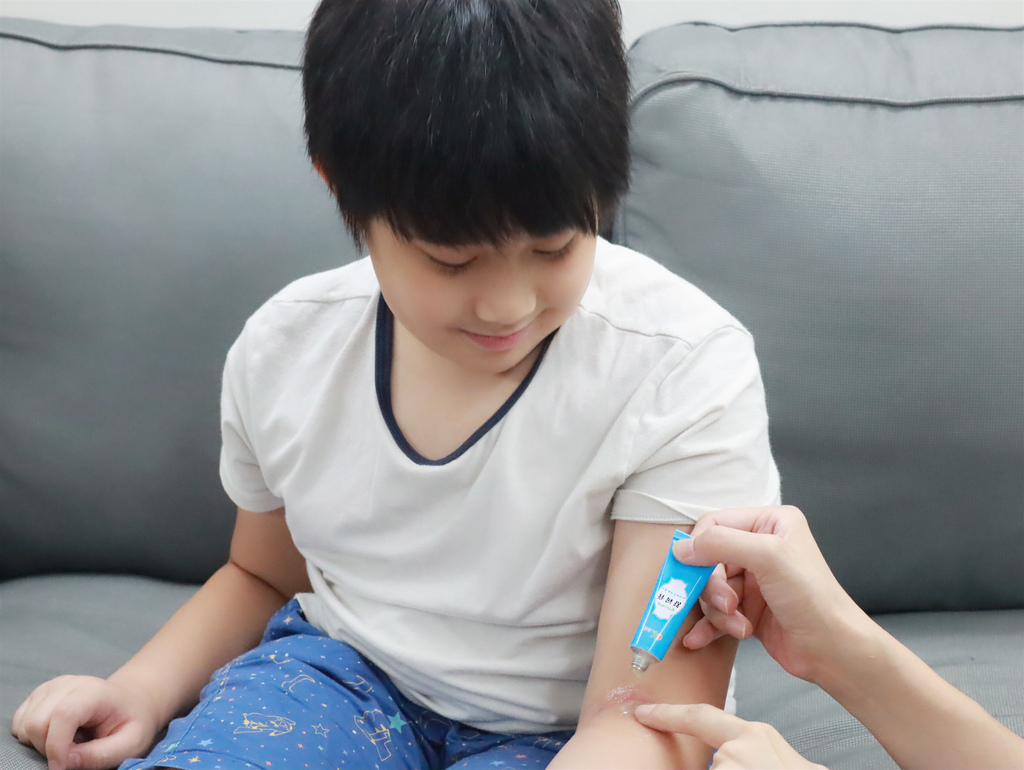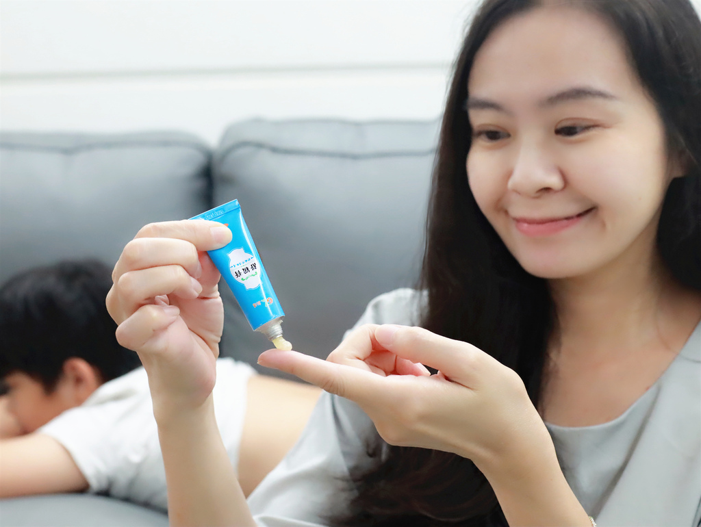 而像是因為天氣炎熱而有肌膚不舒服的情況,有些地方還被甫甫抓到紅通通的,看得媽咪都心疼了,這時候【新揚舒緩膏】也派得上用場,稍加塗抹於肌膚不適的地方,給予適度的清涼感,很奇妙的,肌膚自然就會暢快許多呢!