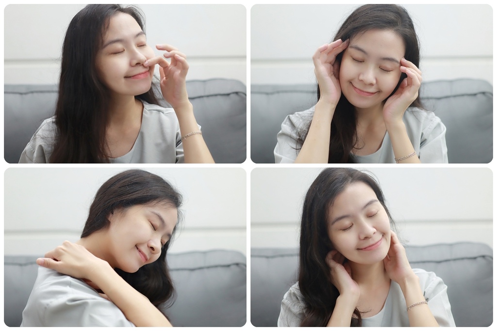 當然,也可以使用在頭部、肩頸等需要紓壓的地方,新揚舒緩膏的質地相當滑順好推,藉由手指的按摩,把舒緩膏慢慢吸收進肌膚底層,無論是頭昏腦脹,或是肩頸悶悶卡卡的感覺,通通都可以迎刃而解唷!