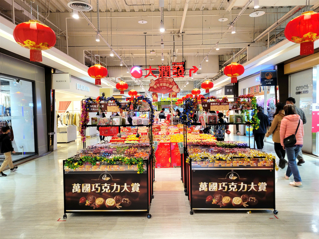 一樓的年貨大街有各式各樣的糖果餅乾、精緻乾貨,甚至有萬國巧克力可以選購,還可以買到香菇、烏魚子、魷魚絲、肉乾等精緻年貨唷! 我發現大潤發內湖二店的燈光特別明亮,所以逛街起來格外讓人感覺到清爽舒服,可以很開心舒適的逛很久很久~