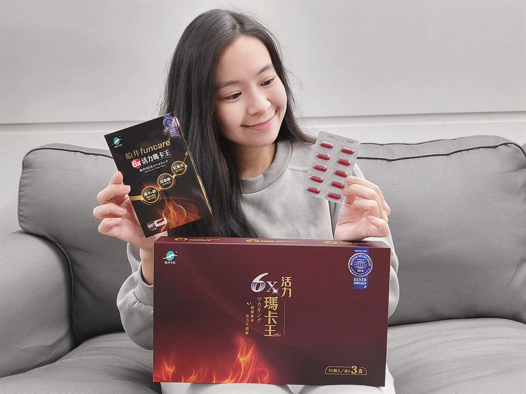 朋友看我們工作很累,推薦補充藥妝店暢銷瑪卡,打算買給老公補補氣。經藥師的介紹,接觸了船井®【6X活力瑪卡王】&【活力瑪卡純精】,發現瑪卡是男女都可以補充的保健食品。認真吃了一段時間,不管是早上的工作效率,一直到晚上都還保有活力精神,夫妻也更加幸福滿滿囉!