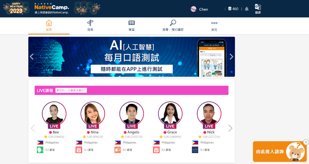 來看看更多資訊,目前每個月僅需台幣一千多元就可以購買包月課程盡情學習,也可以先免費體驗課程:https://nativecamp.net/zh-tw?cc=tw_jbg_375