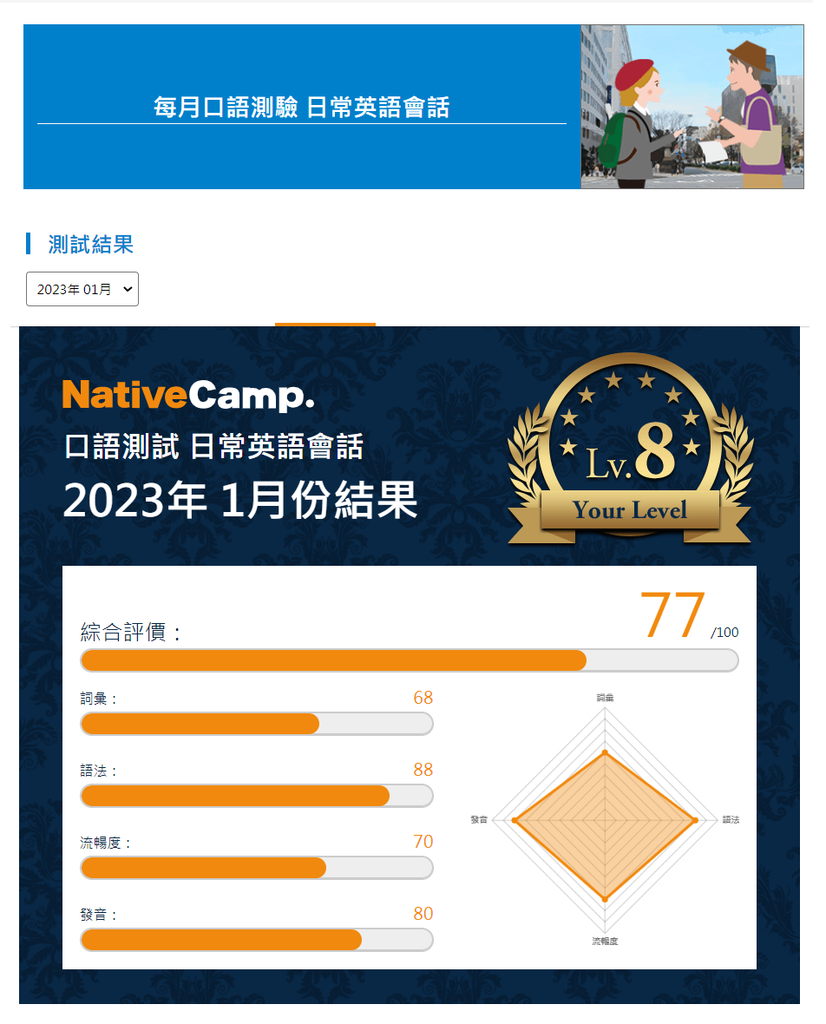 我們也會參加每月口語測驗/商用英語測驗,這樣一來就能更清楚的知道,自己在學習上需要加強的地方與越來越進步的部分囉!