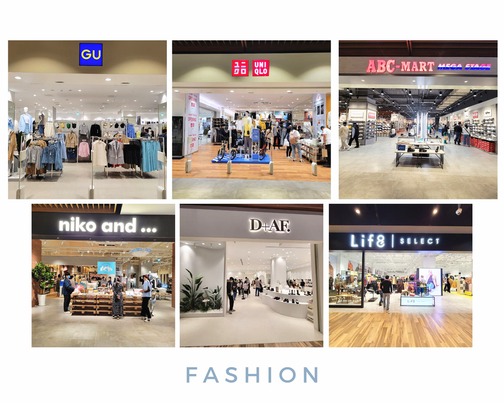 超受歡迎的「UNIQLO與 GU」兩大品牌也合開了大型聯名店,讓我可以一次逛個夠,更特別的是引進UNIQLO FLOWER花店,買完衣服順便買花,這也太愜意了吧! 另外還有「niko and …」、「Lif8」、「D+AF.」、「ABC-MART」 等時尚品牌唷!