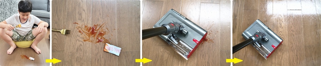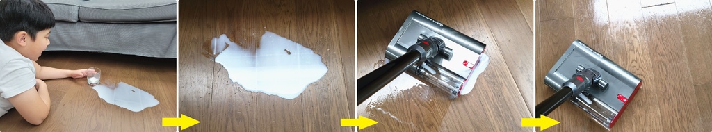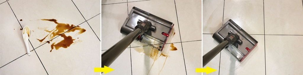 我每天就是這樣用Dyson乾濕全能洗地吸塵器,先吸走異物,再清潔洗地,不需要水桶抹布和拖把,輕輕鬆鬆把地板處理得乾淨如新,把污漬、液體髒污洗他個片甲不留,只要輕輕的滑過地板,簡直就像地板拋光一樣,家裡乾淨溜溜就能感覺得到唷!