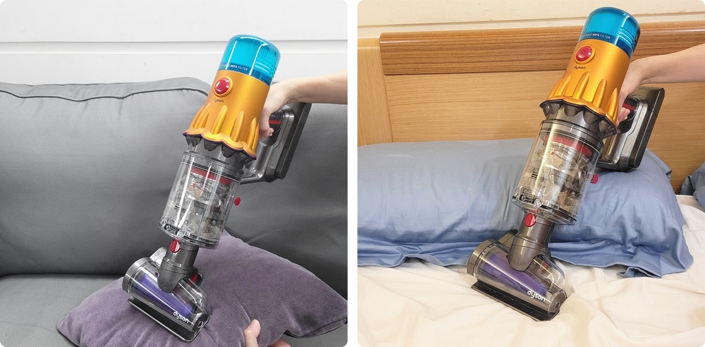 不需要另外拆卸刷頭來清潔毛髮,節省了我好多時間,而且錐形吸頭的設計,可以把床墊、沙發、寵物床、抱枕等布質環境清潔得超乾淨,每個的居家清潔小細節都不馬虎!