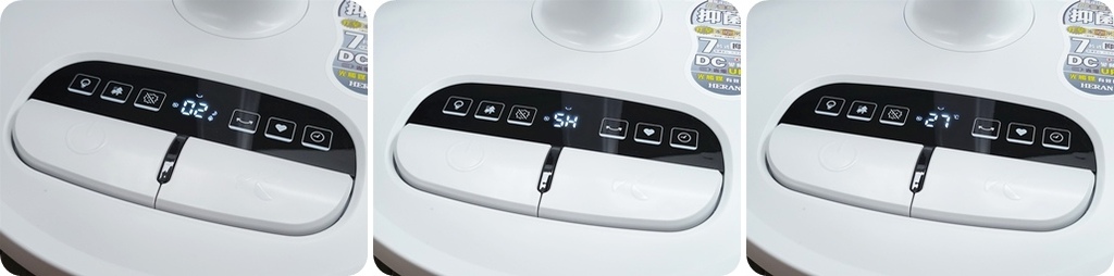 在智能設定方面,都能利用這個數位顯示操控面板來控制。可以遙控自動擺頭、預約定時設定、ECO智能溫控模式,如果晚上怕吵怕亮,也可以選擇靜音、滅燈,如此一來,更能夜夜好眠囉!