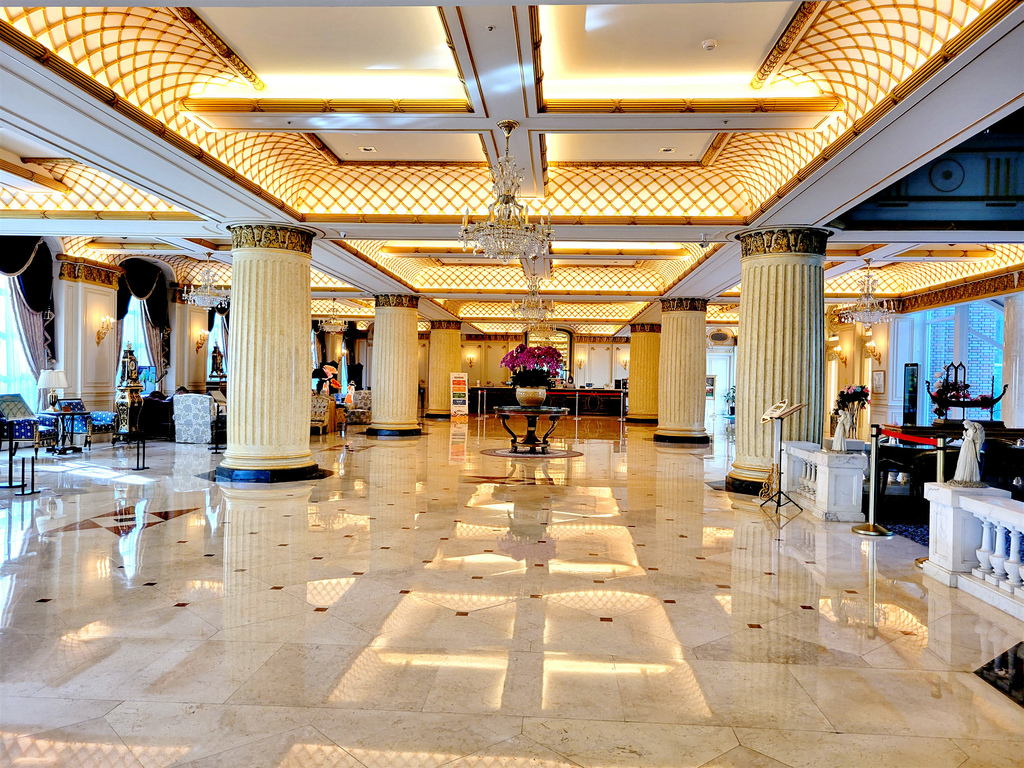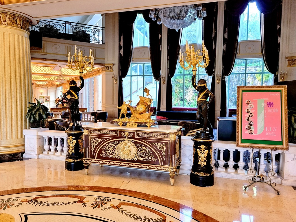 富麗堂皇的宮廷風飯店大廳豪華氣派,燦爛耀眼的水晶吊燈散發出璀璨的光芒,就像置身於一座宏偉的皇宮之中的夢幻!