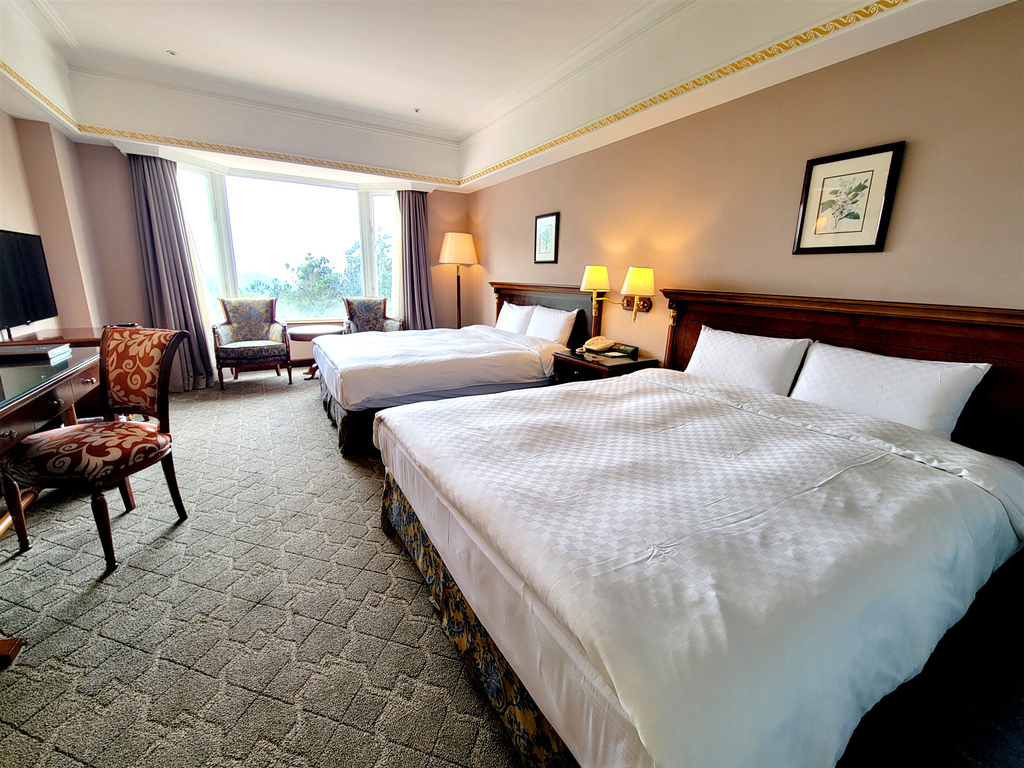 步入飯店房間,驚喜的發現空間非常寬敞,兩張雙人床也好大啊,讓人感到非常宜人舒適!
