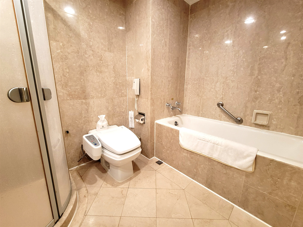 房間內配置了一個泡澡浴缸和的免治馬桶,可以盡情享受舒適的沐浴體驗。值得一提的是,米堤的乾濕分離拉門也做得太好了吧,真的是極致緊密,一滴水都不外漏,哈,讓我忍不住都想詢問到底是哪家的拉門那麼厲害哩😁