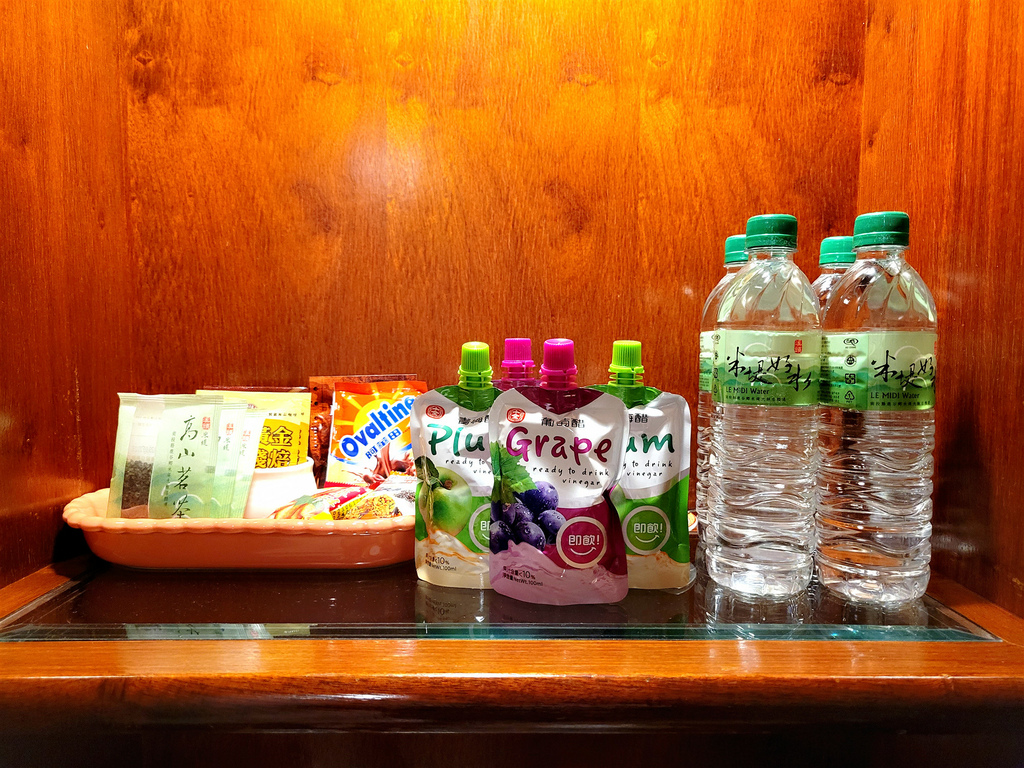 房間的備品齊全,使用的是拋棄式拖鞋,所以如果有預計使用到游泳池或三溫暖的朋友,記得要自己再帶外出型的拖鞋唷!