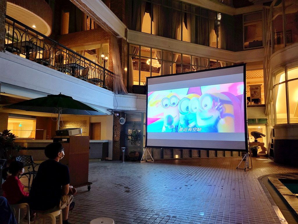 游泳池畔的星空電影院也吸引了不少孩子來觀賞。