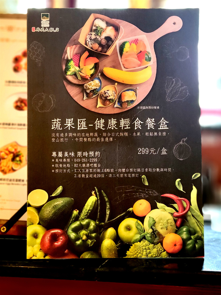 在溪頭山區要找營養健康又衛生的餐點並不是那麼方便,所以我們都選擇在米堤飯店用餐,就連前往溪頭健行的登山飯包也是先跟米堤預定「蔬果匯-健康輕食餐盒」。