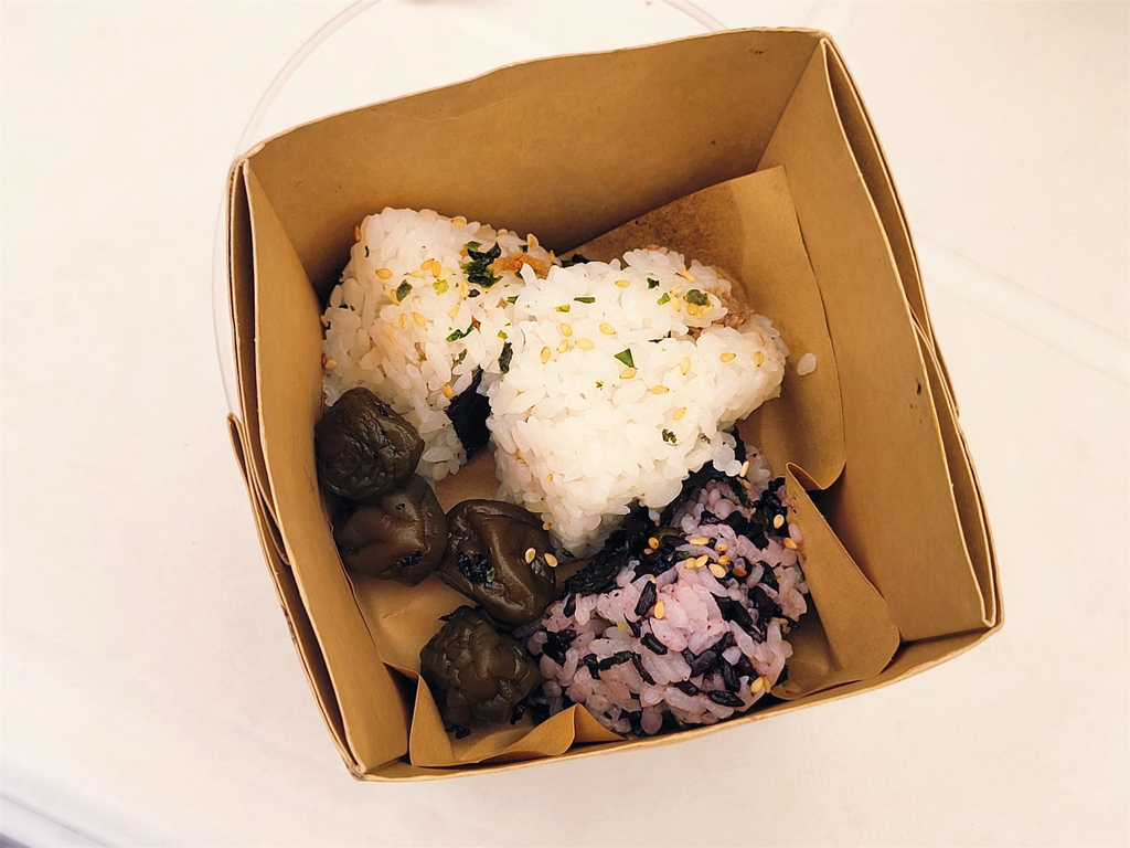 第二層是三種不同口味的日式飯糰,有紫米飯糰、海苔鮪魚飯糰、肉鬆飯糰,健康好吃又有飽足感!