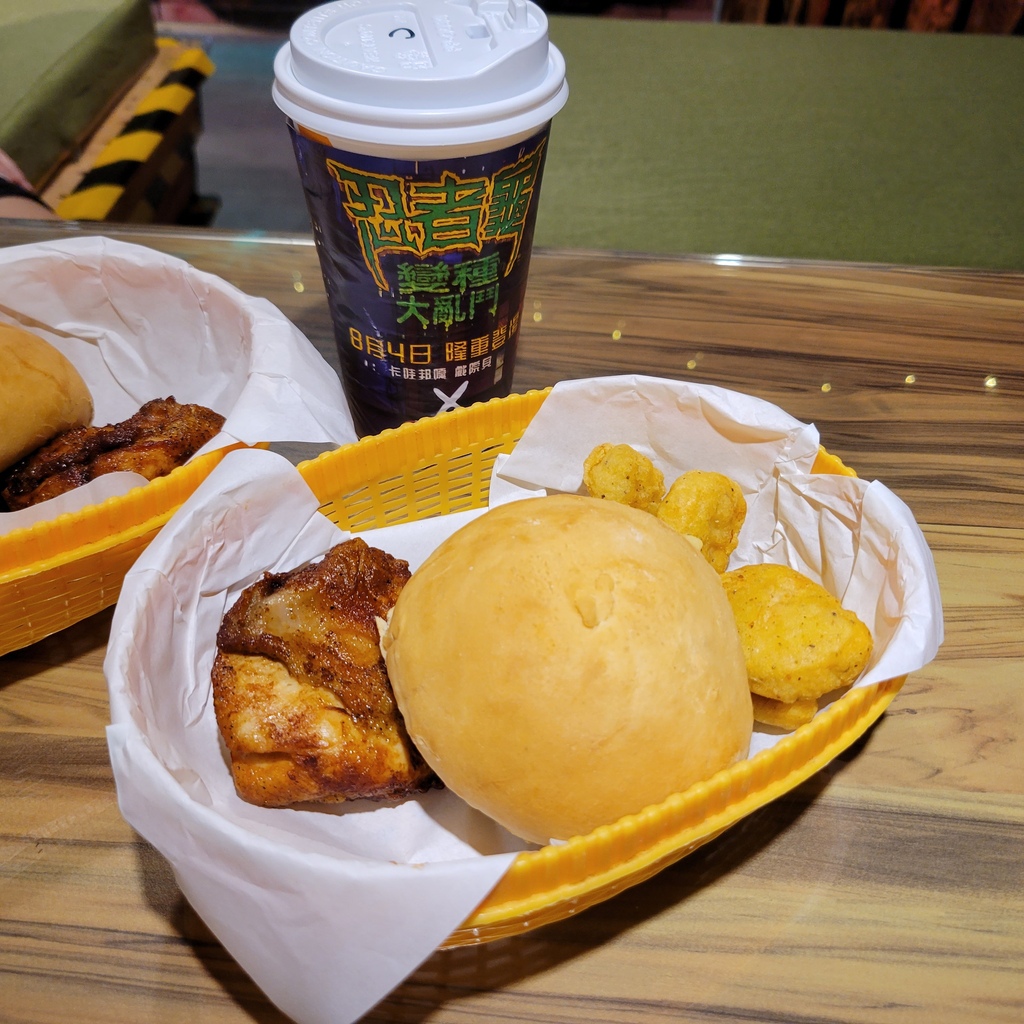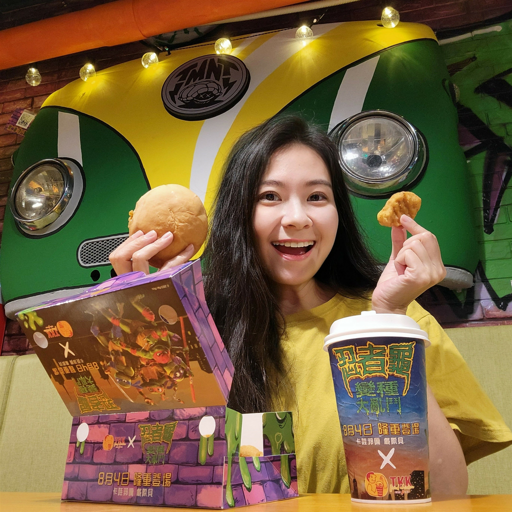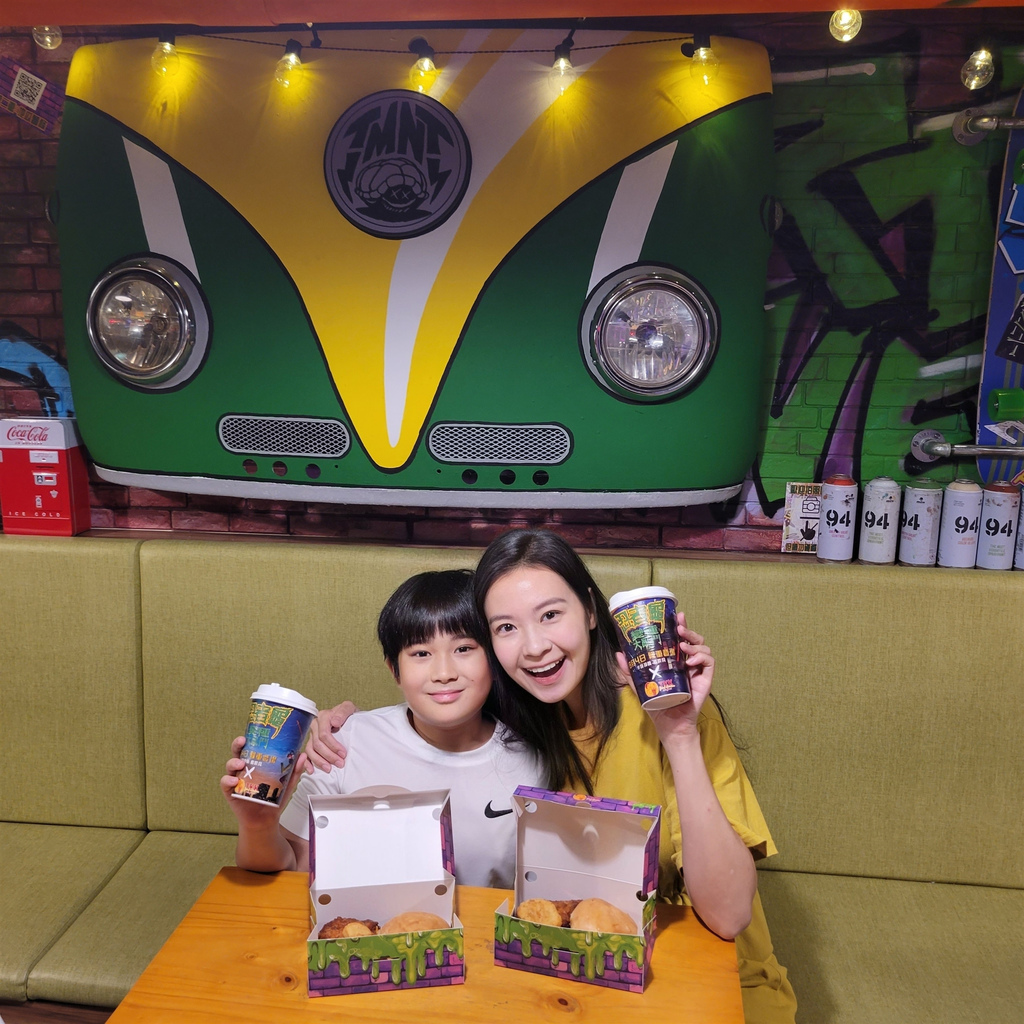 哈! 原來這是頂呱呱和忍者龜變種大亂鬥的聯名活動,除了可以體驗忍者龜的世界,還有超級划算好吃的特色餐點 #卡哇邦呱餐,有忍者龜最愛的口袋披薩,超爆漿牽絲的披薩實在太美味,一口接一口完全停不下來,外加原味炸雞、阿勇雞塊和飲料,吃起來大滿足,一邊享受美食,一邊和忍者龜拍照,根本吃到捨不得回家啦!