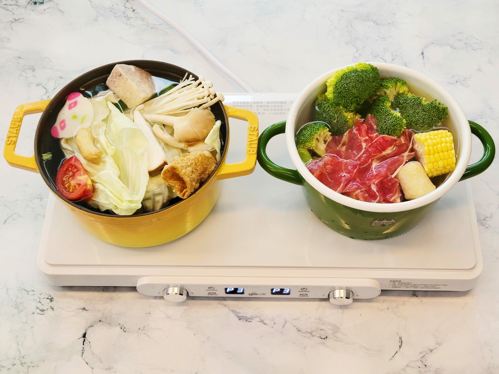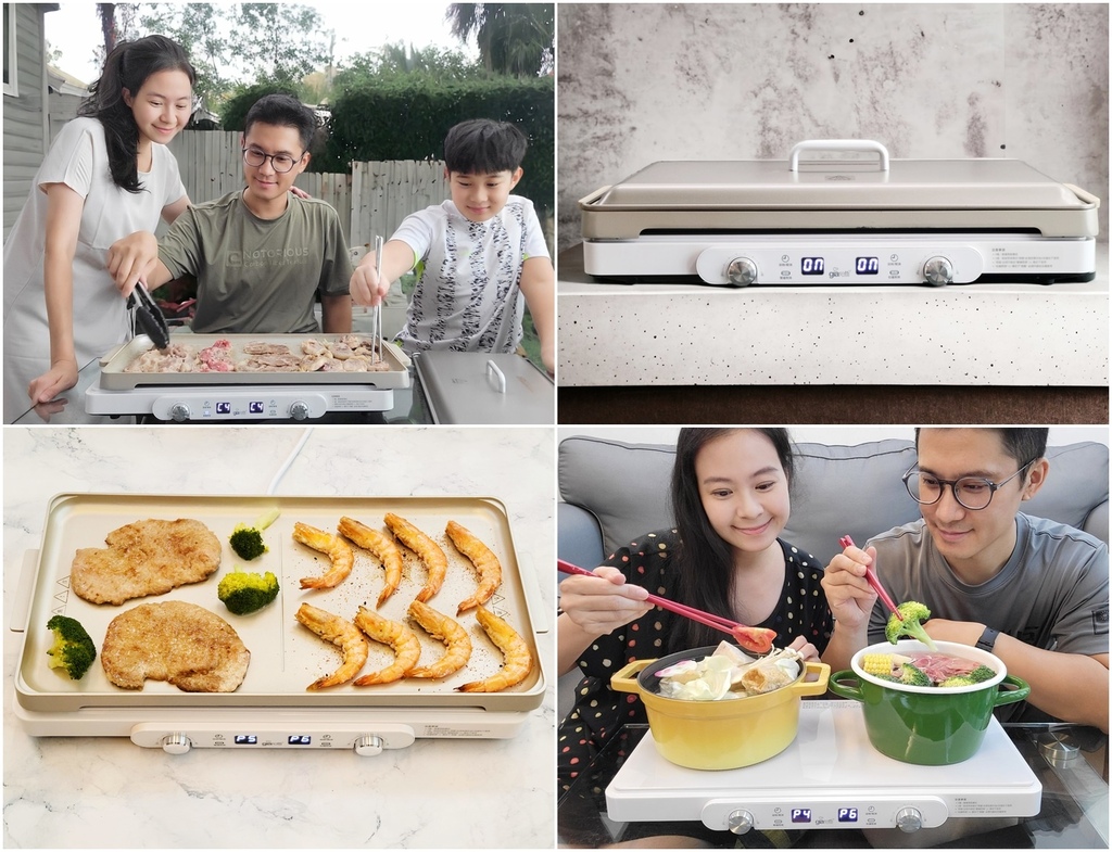 簡單來說這就是一個好厲害的攜帶型IH爐,可以烤肉,也可以烹調火鍋,更讚的是面板容量好大、火力加熱無敵快速,親友一起吃吃喝喝也沒問題,也多虧了獨立雙溫控設計,左右兩個面板可以放置不同的鍋物,我和老公一個人吃麻辣鍋、一個人吃昆布鍋也好愜意,那麼方便的聚嗨爐,已經成為我們家烹調的好幫手囉!