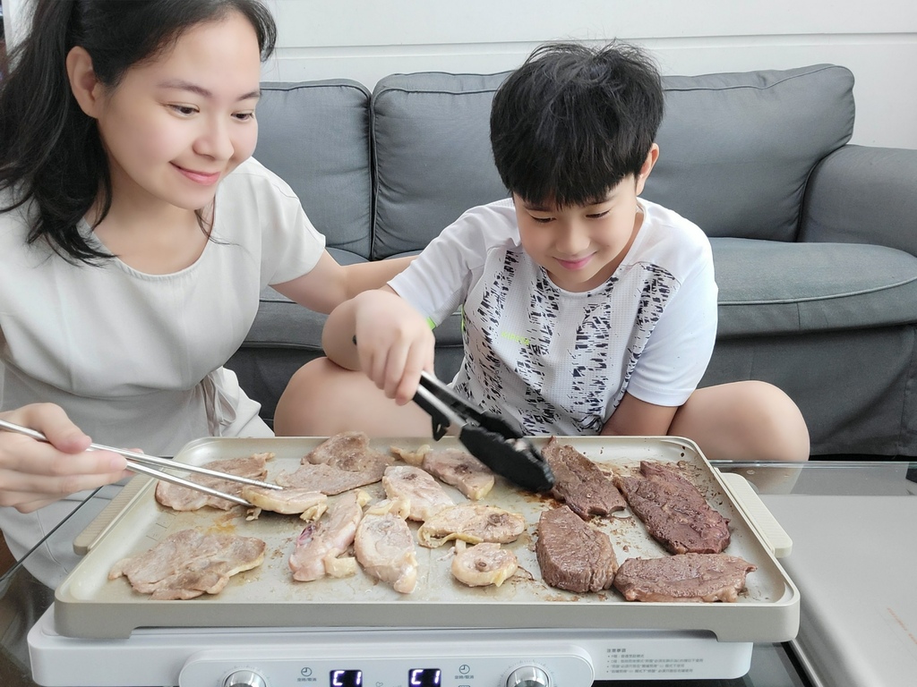 我們喜歡先烤肉、再用剩下的食材烹煮火鍋,一爐多吃,真是太方便了吧! 聚嗨爐有7段式火力調節,最高還可以達到1400W,比一般電烤盤還快上50%,加熱速度飛快,想要烤盤炙燒、桌邊烹飪、油炸翻炒、小火慢燉通通都可以辦得到,三兩下就可以把豐富的食材料理完成囉!