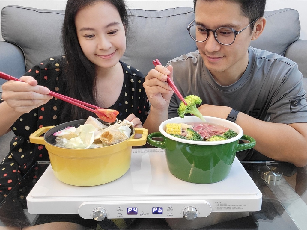 左邊素食火鍋、右邊牛肉火鍋,或是左邊涮涮鍋、右邊壽喜燒,甚至是一邊燉湯一邊快炒也能輕鬆搞定,也可以一邊烹調、一邊保溫,一次享受多種混搭鍋料理,有了Giaretti IH 聚嗨爐之後,平凡媽咪也都可以秒變大廚啊!