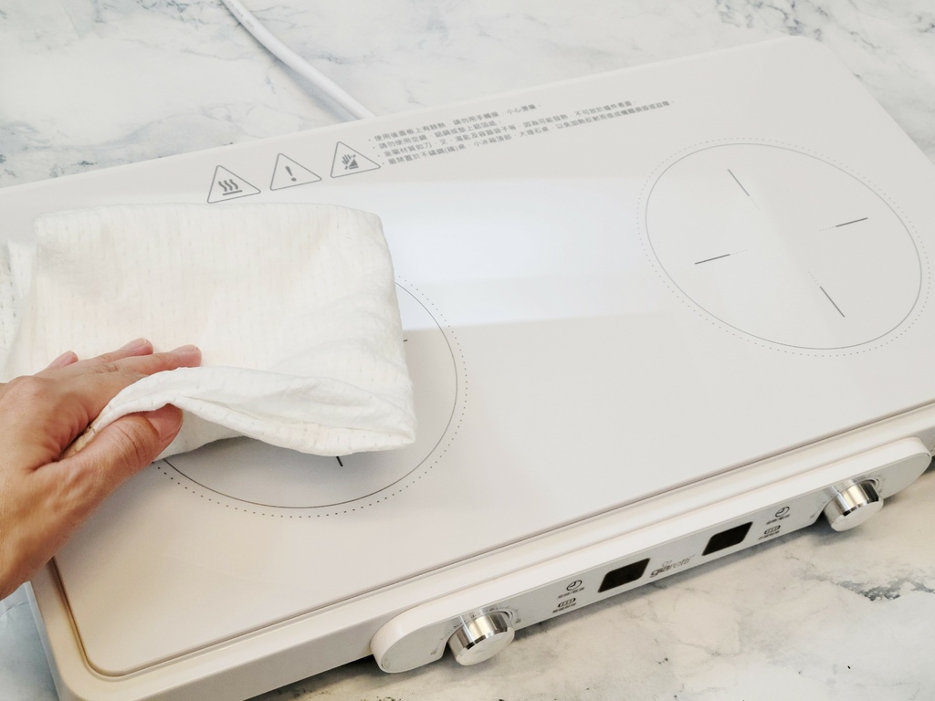 爐面相當好清潔,微晶玻璃面板只要用濕布輕輕擦拭,就能輕鬆把髒污帶走囉!