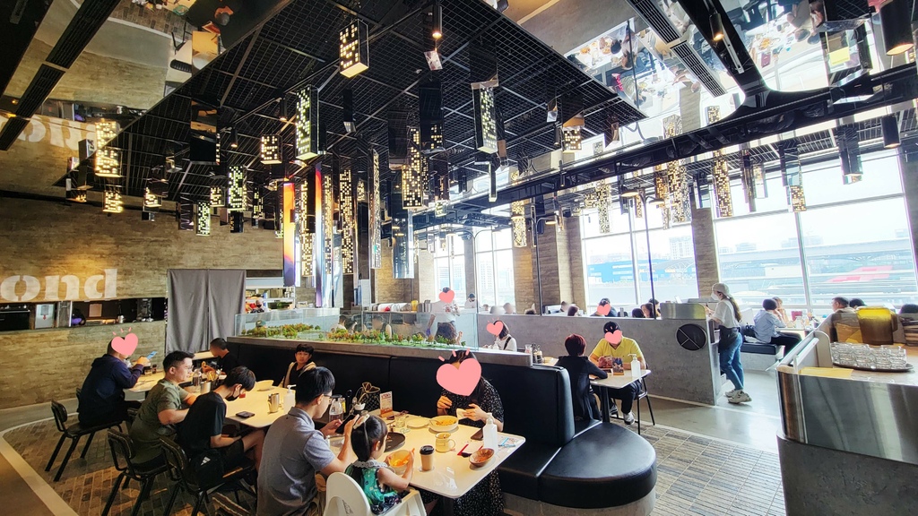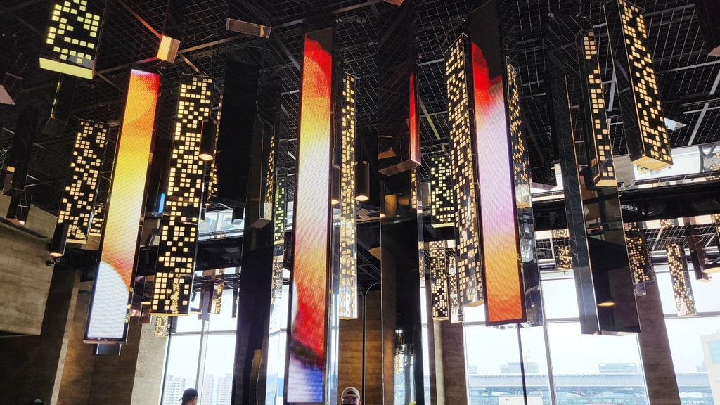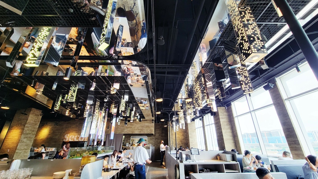 一進入餐廳,就被這個彷彿電影般城市上下顛倒的奇幻視覺給吸引住了,原來這是以《全面啟動》的電影場景為概念,呈現出城市上下顛倒的景象,我好像就在繁華的時代廣場裡,如夢似幻!