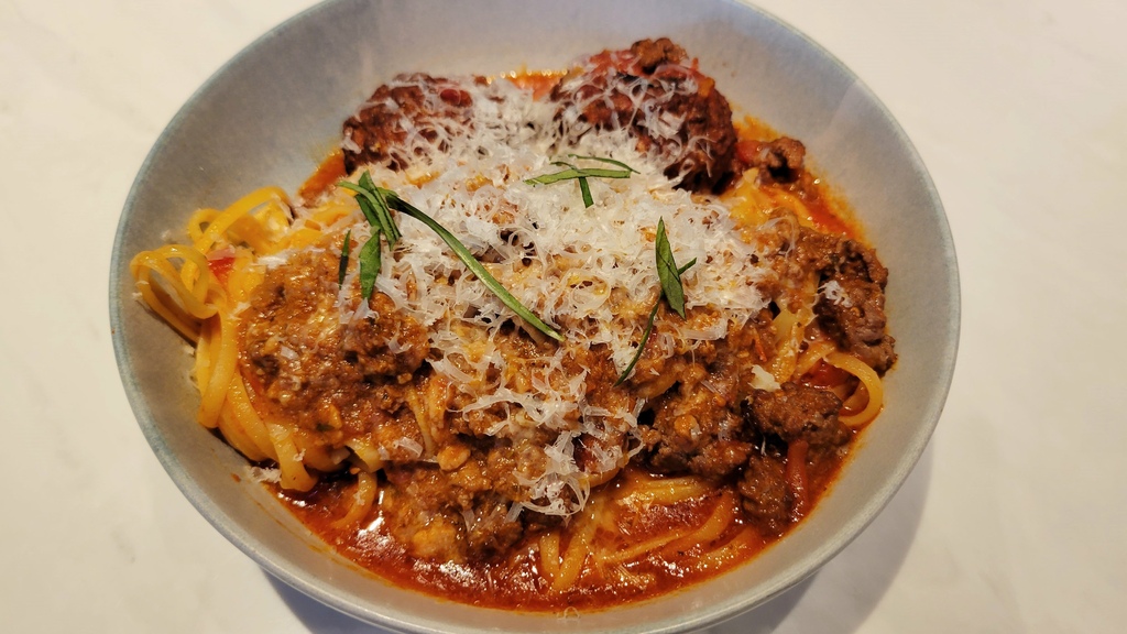 「家鄉肉醬麵佐老媽子的肉丸」義大利麵的口感很棒,麵條的完美Q彈度,再加上極富層次感的肉丸,每一口都品嚐得到鮮嫩多汁的美味,絕對不能錯過!