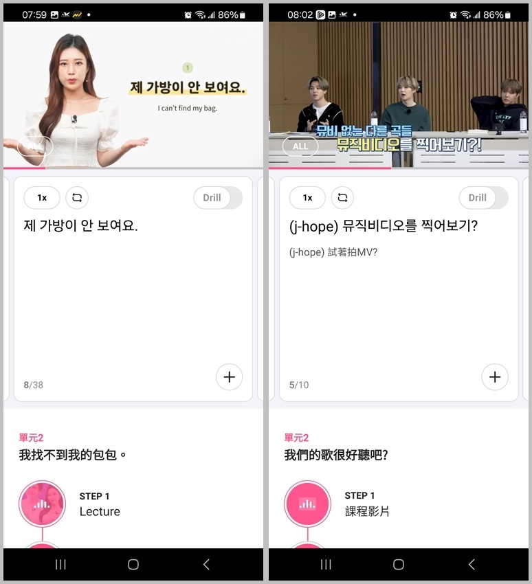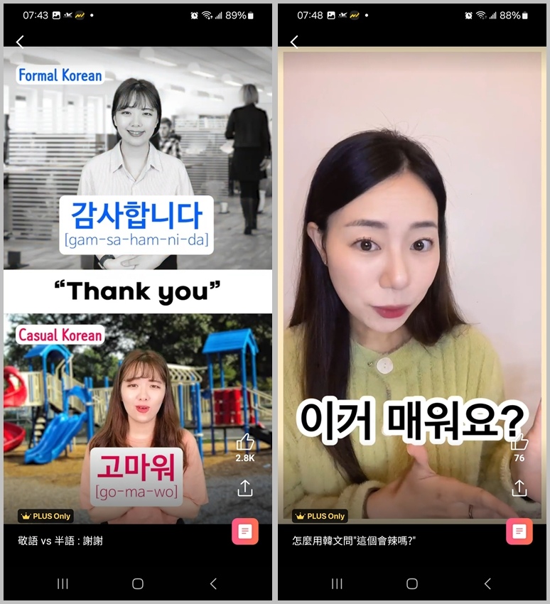 從零基礎的初級韓文到中級韓文都有,每個小單元只有短短的一兩分鐘,上下學或上下班通勤的時候就可以看了,搭個捷運絕對可以完整學會一整個完整單元,一天學一點積少成多,學得也更紮實!