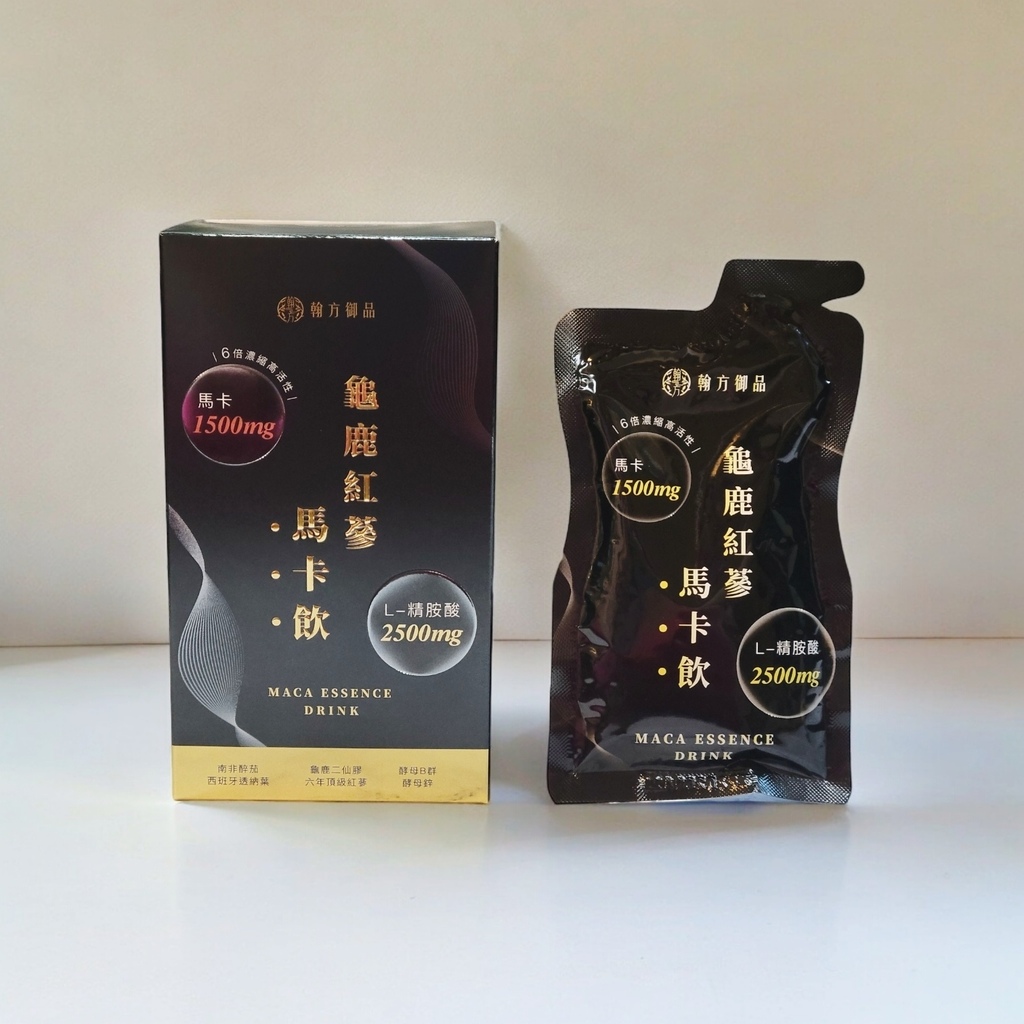 而我最近補充的這款【翰方御品.龜鹿紅蔘馬卡飲】簡直就是我生活中的活力生力軍,一開始還以為補充馬卡是男生的專利,結果google了一下才發現馬卡對幫助女性調節生理機能,甚至對於中年婦女調整體質也很不錯唷!