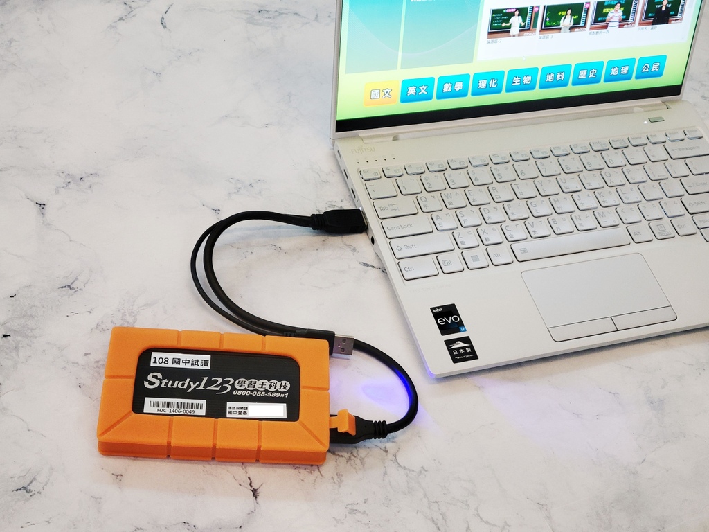 比較特別的是,學習王【萬試通】是使用隨身硬碟進入課程,所有寶貴的學習資訊通通都在硬碟中,即使沒有網路也可以在電腦上使用唷!